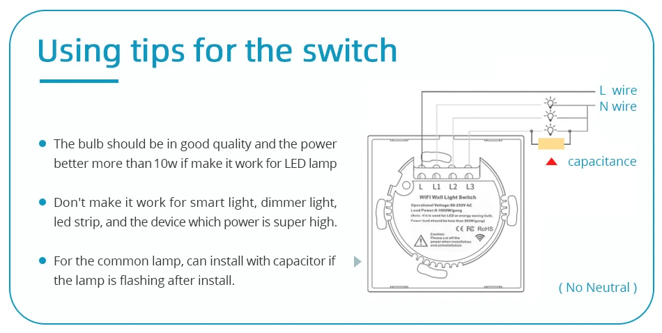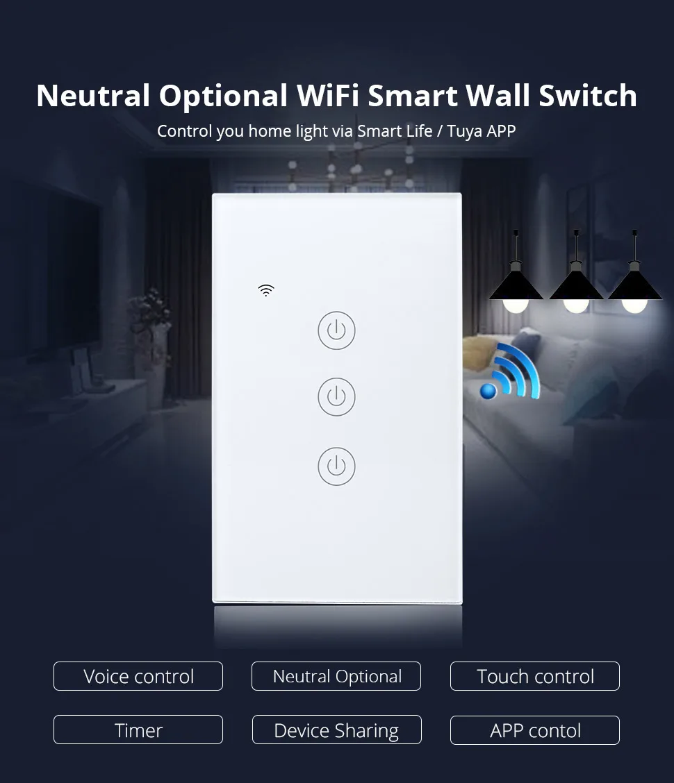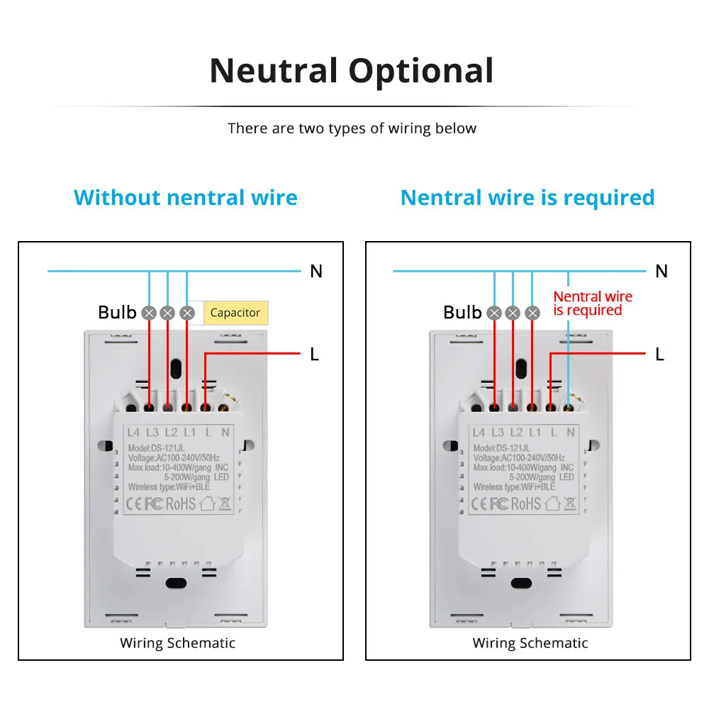 Этот Tuya переключатель Wi-Fi дизайн в 2 способа подключения ламп. Это больше выбор для вас, чтобы выбрать и адаптироваться ко всем устройствам в вашем доме. Мы проектируем нейтральный лир в качестве выбранных вариантов, чтобы вы могли его изменить.