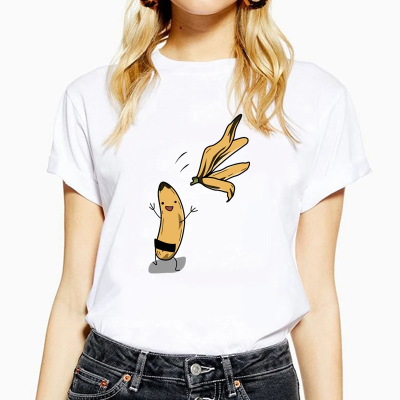 Банан раздеться печати футболки для девочек размера плюс Лето Забавный Футболка женская 5 видов цветов с круглым вырезом и короткими рукавами, женские футболки