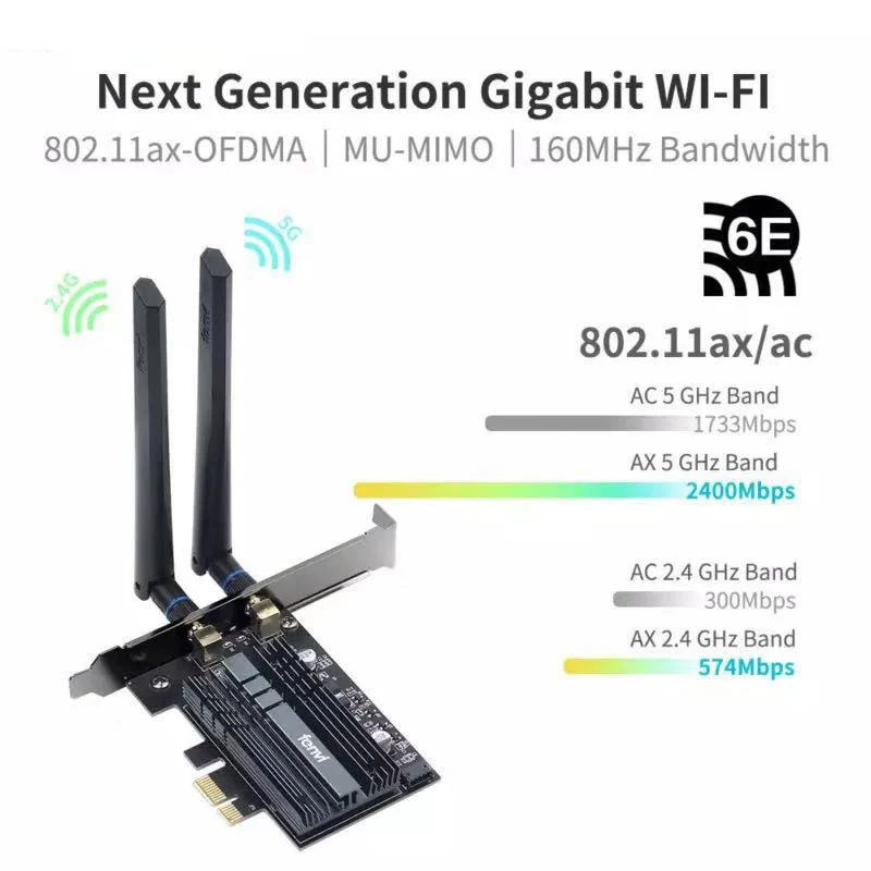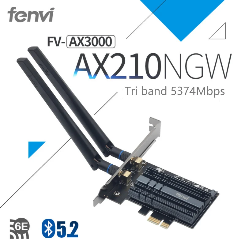 Беспроводная сетевая карта Fenvi Tri Band, 5374Mbps, Wi-Fi 6E, Intel AX210, Wi-Fi адаптер AX200NGW, 802.11acax, Bluetooth 5,2, для настольного компьютера