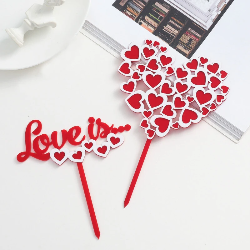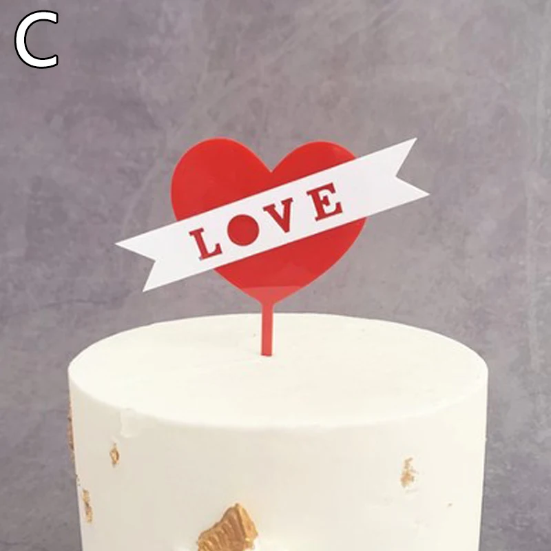 Флаг с надписью Happy Birthday Love, акриловый топ с надписью красно-белый торт, украшение для торта на День святого Валентина вечерние свадьбу