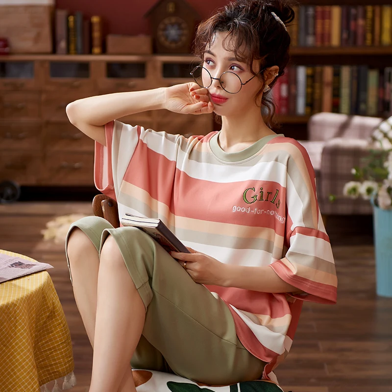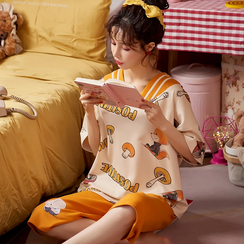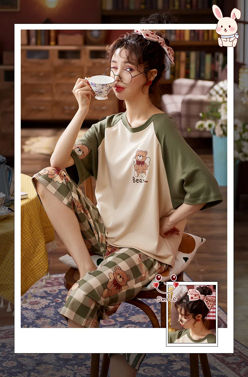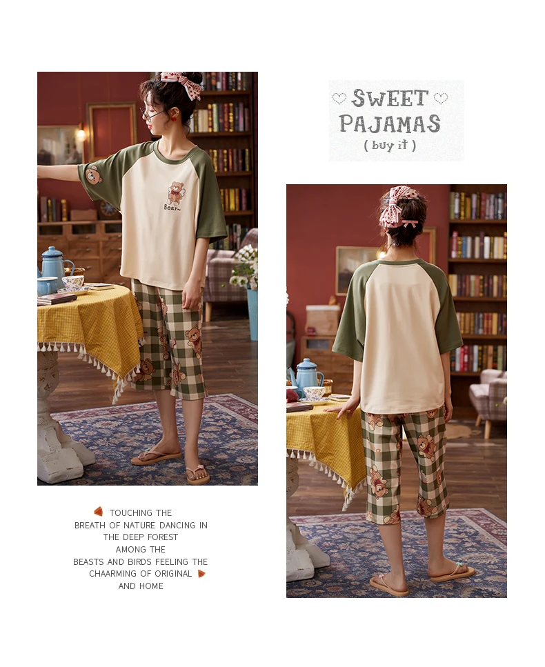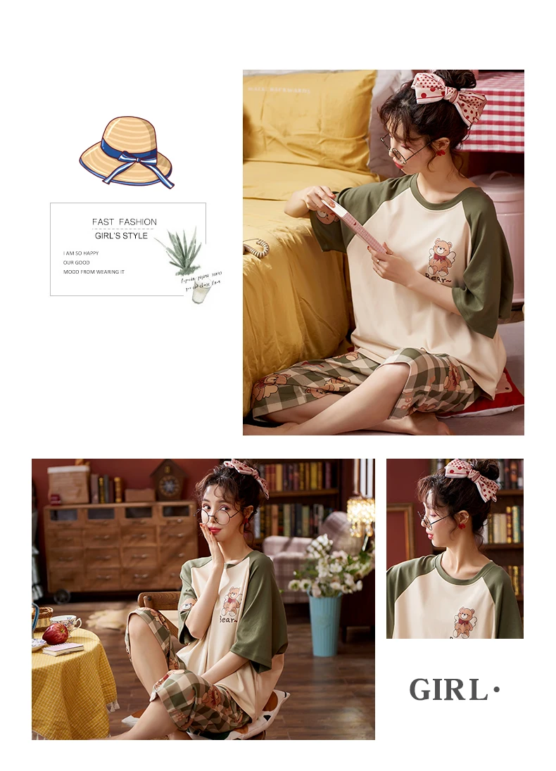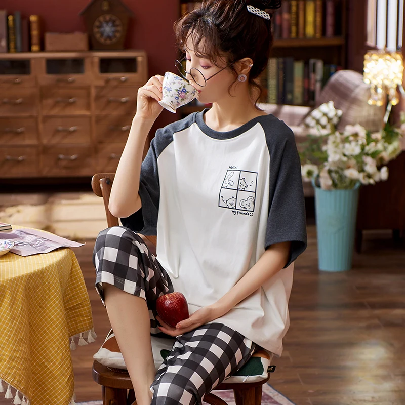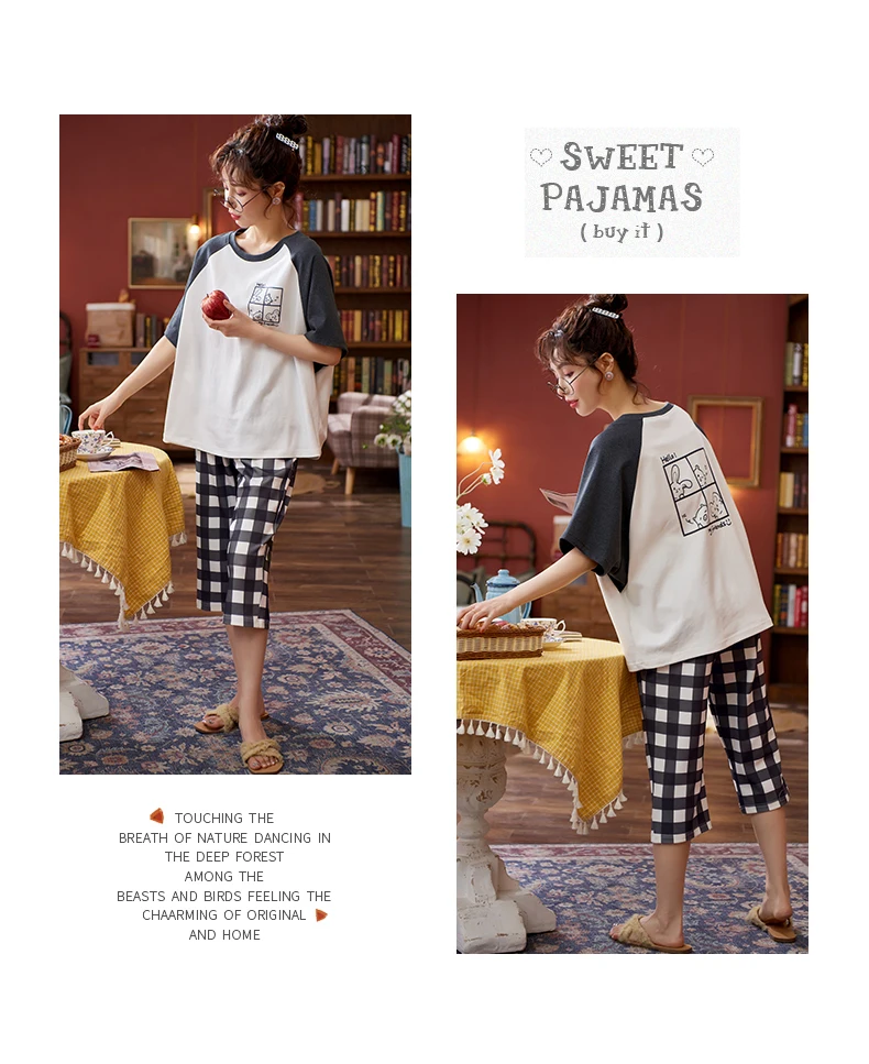Женский пижамный комплект BZEL размера плюс, пижама Mujer, мультяшная повседневная одежда для сна, Хлопковая пижама, летний домашний костюм, клетчатые шорты, ночная рубашка