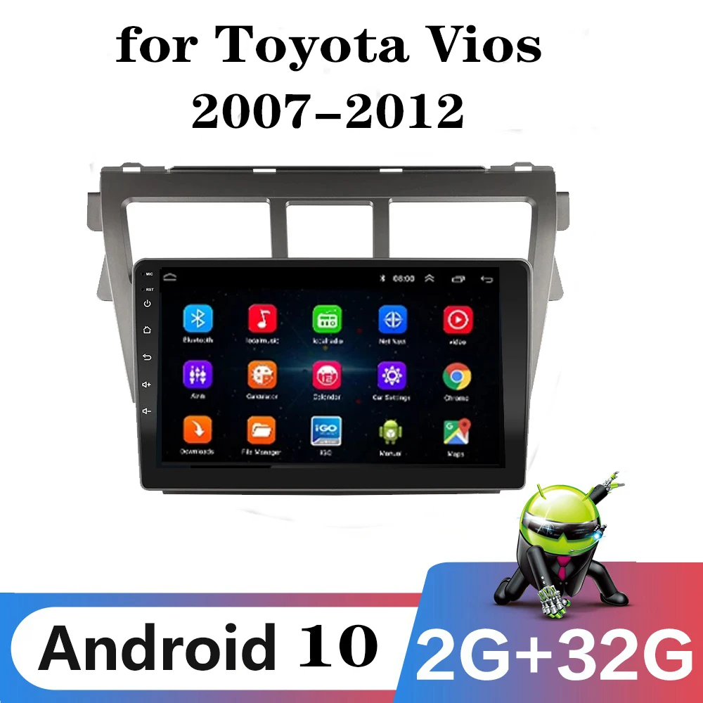 Автомобильный радиоприемник Carplay 2 ГБ + 32 ГБ для Toyota Vios Yaris 2007 2008-2012 Android 10, автомобильный GPS-навигатор, мультимедийный стерео BT