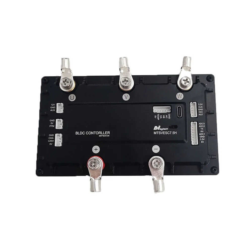 Номер модели: MTSVESC7.5H ( MTSPF7.5HK SUPERFOC ESCCont. Ток: 300A/400A с водяным охлаждениемТок разрыва: 1000AНапряжение: 18-75 вЛипо: 5-18SАппаратная версия: на основе V75/300Прошивка: совместим с VESC_TOOLКонденсаторы: 24 шт.BEC: ДаРазмер: 148,5*84*45 ммПрименение: электрический скейтборд, боевой робот, электровелосипед, электрический мотоцикл, efoil, электрическая доска для серфинга, водное судно, электрическая лодка, подводный ROV и т. д.