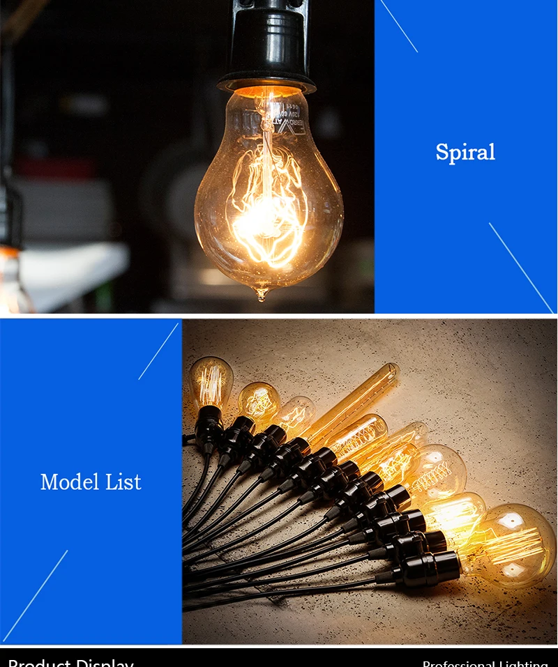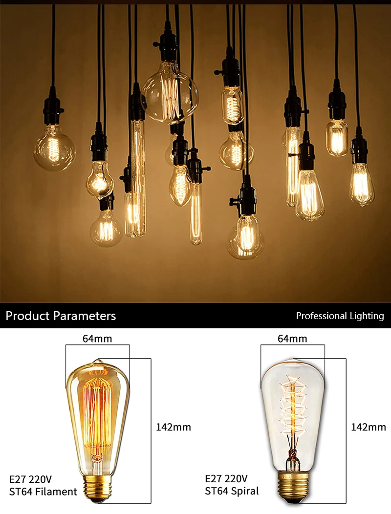 Лампа Эдисона Ретро, E27, 110 В, 220 В, 40 Вт, ST64, T45, G80, G95, G125