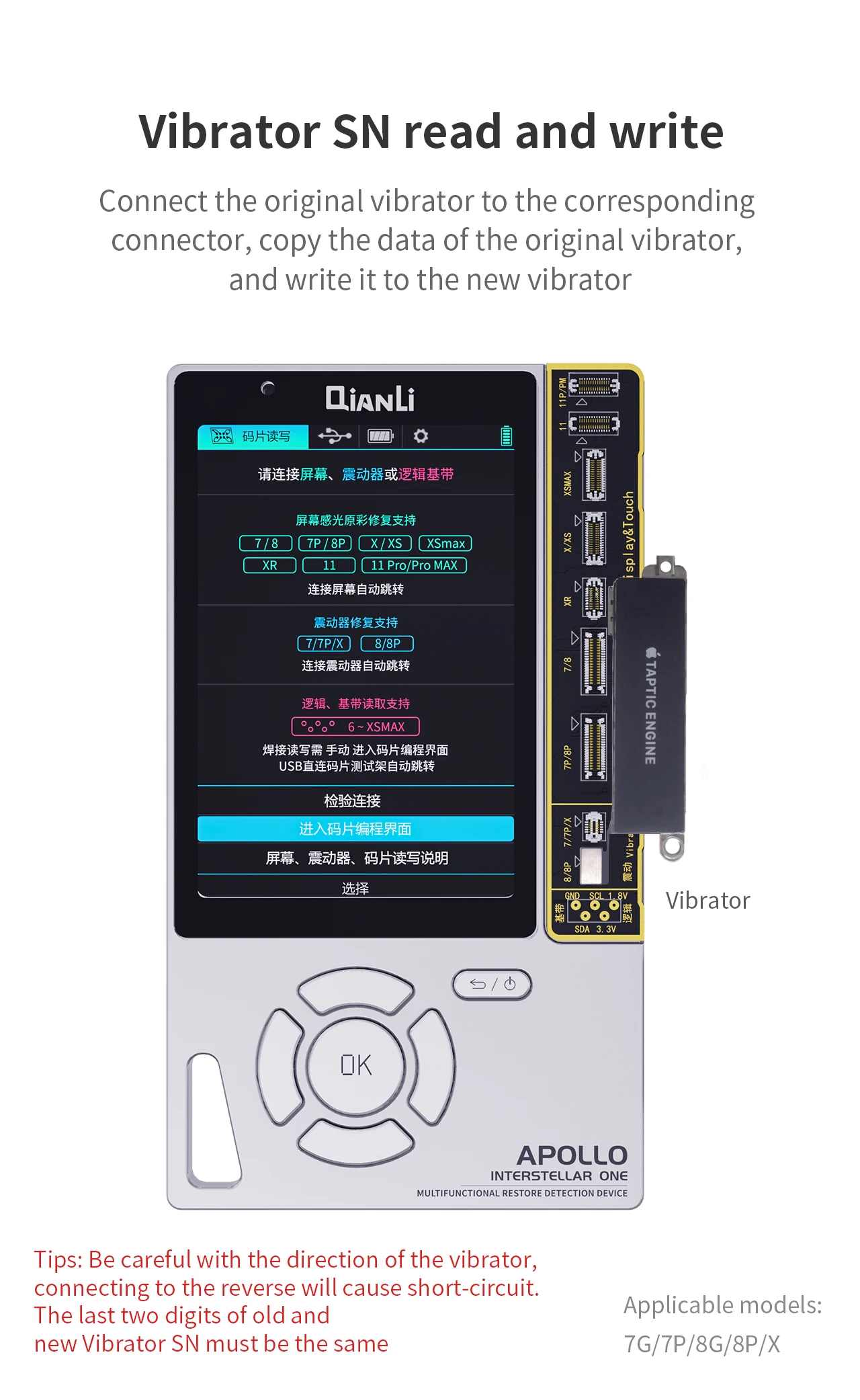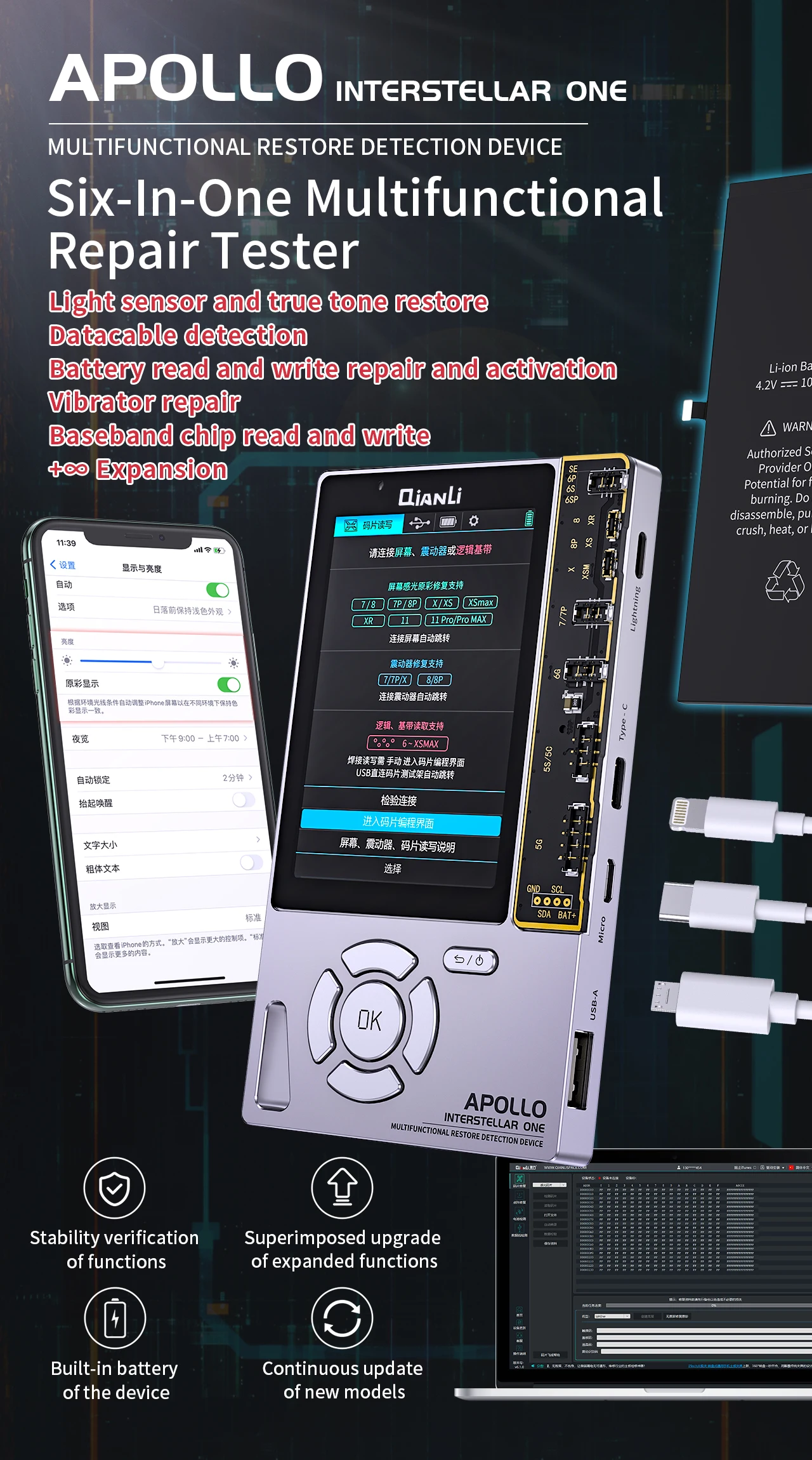 Qianli Apollo Interstellar One для экрана iPhone, оригинальный экран True Tone, батарея, вибрация, данные, код обнаружения, чтение и запись