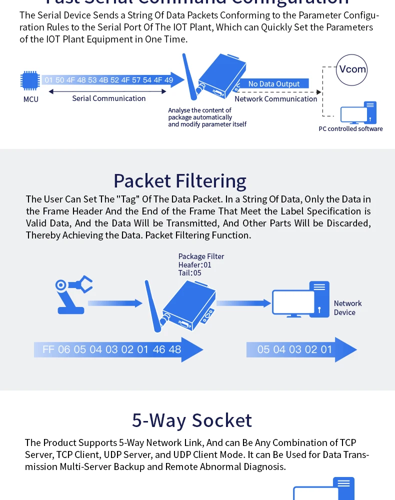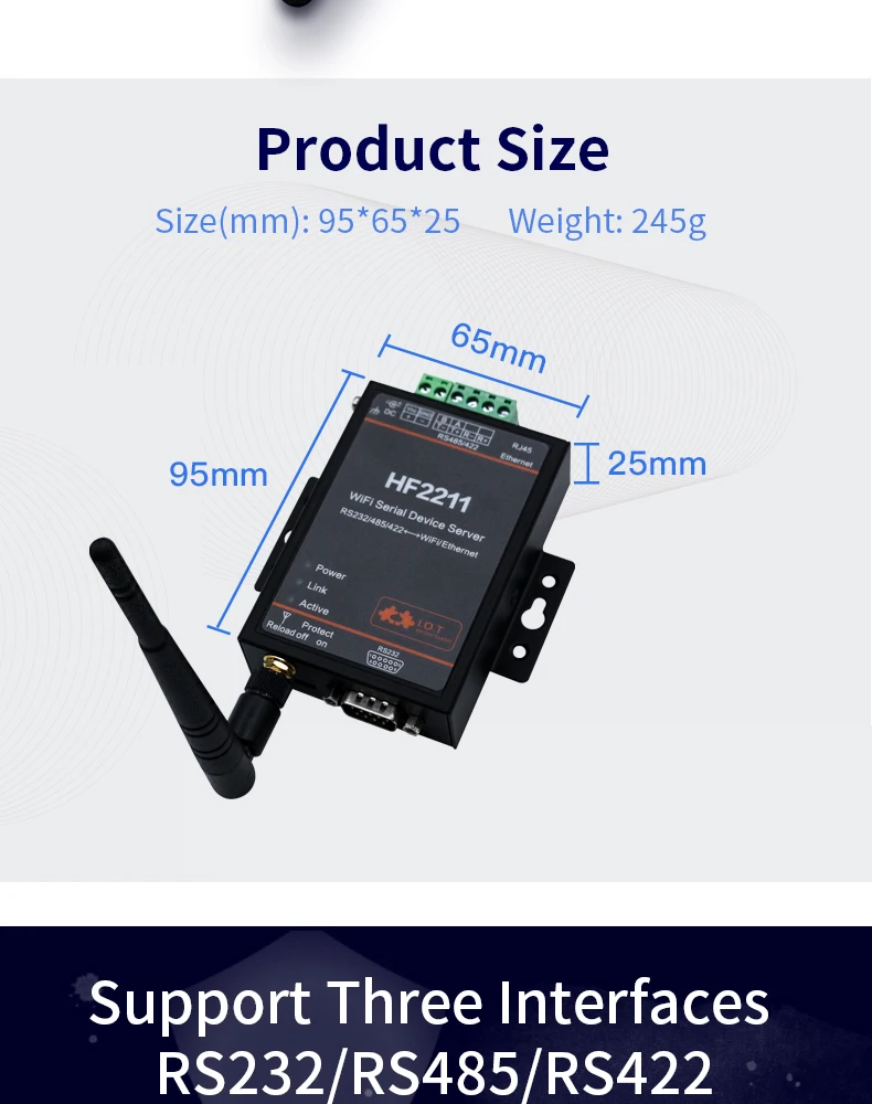 ² Поддержка 232/RS422/RS485 для преобразования Ethernet/Wi-Fi, последовательная скорость до 460800 bps