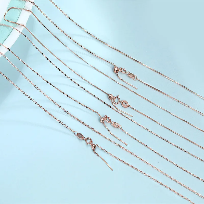 Lo Paulina подлинное Твердое Серебро скользящая Регулируемая цепочка ожерелье 18 "0,65 мм коробка 0,8 мм сверкающая 1,2 мм бусина 1,3 мм Крест