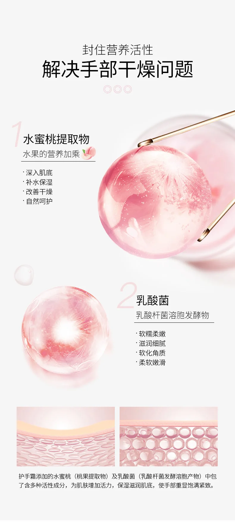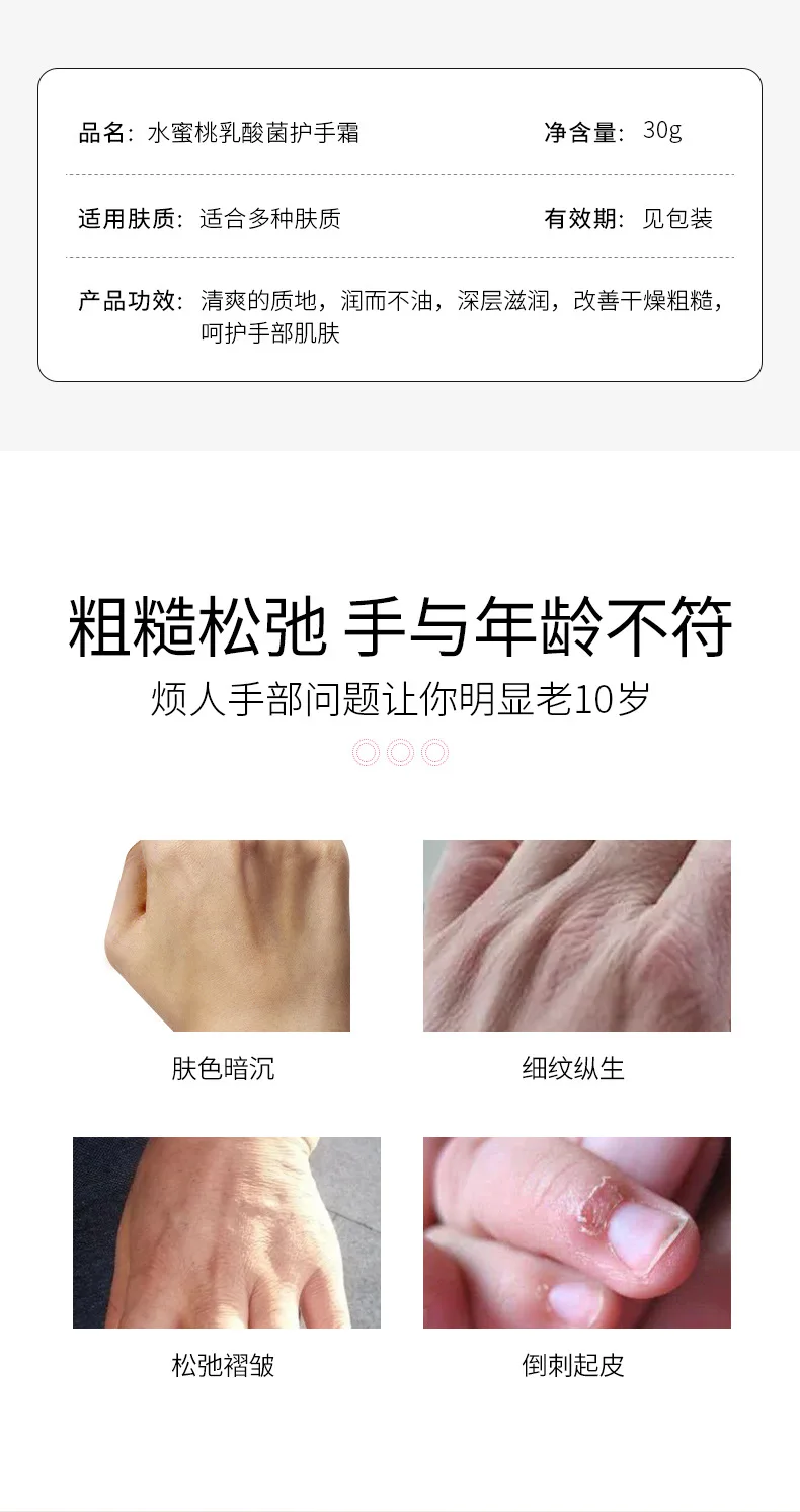Персиковый Крем для рук с молочной кислотой и бактериями, увлажняющий мягкий осенне-зимний уход за кожей рук