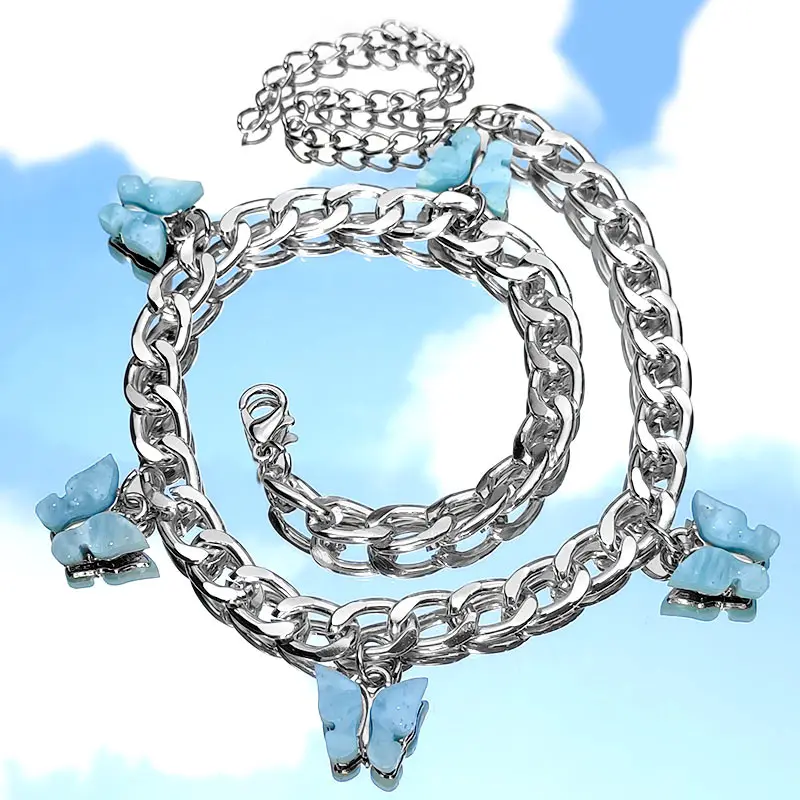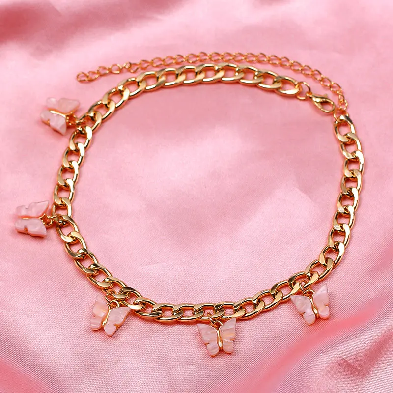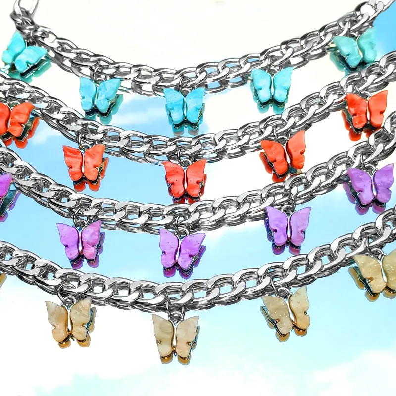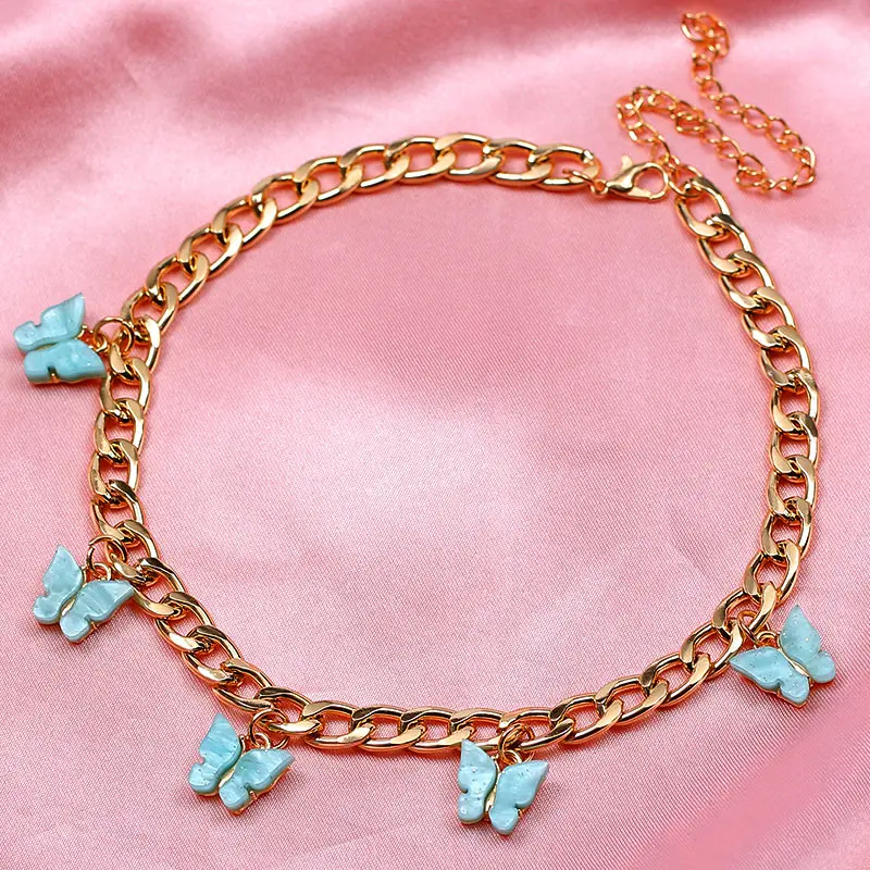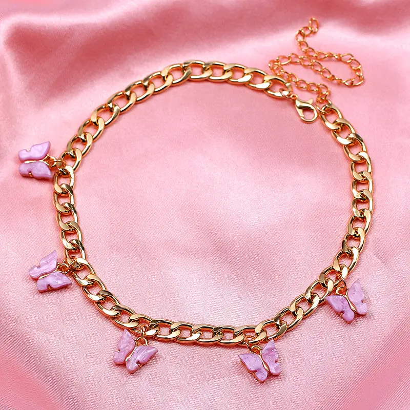 Металлическая кубинская цепь-чокер для женщин, винтажное ожерелье золотистого и серебристого цвета с подвеской-бабочкой из акрила в стиле панк, подарочное Ювелирное Украшение