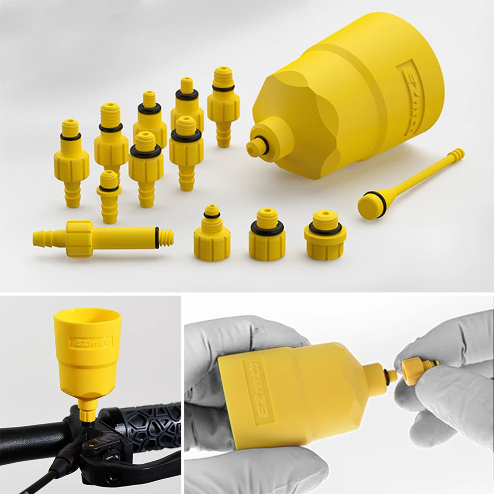 Полный комплект велосипедной прокачки облегчает кровотечение.