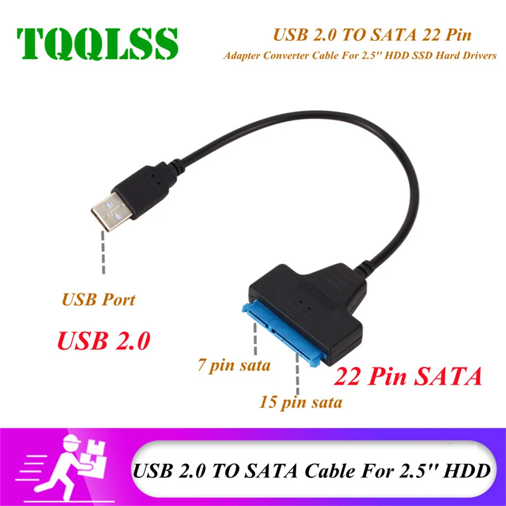 Переходник с USB 2,0 на SATA 22-контактный медный сердечник и кабель ABS для HDD SSD Внешний кабель для преобразования жесткого диска подходит для 2,5 дюймового SSD