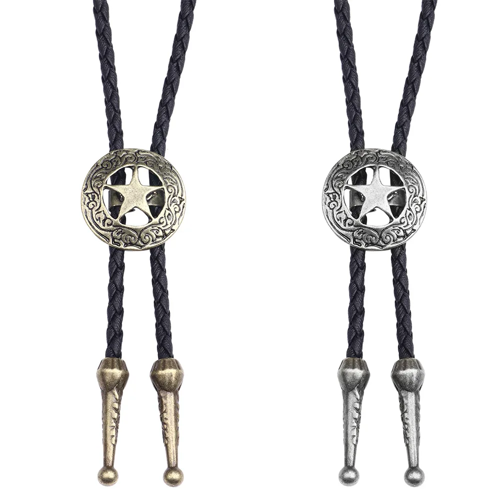Винтажный Мужской галстук-бабочка со звездами, металлическая кожаная веревка, мужской воротник рубашки, галстук-бабочка, галстук-бабочка, ковбойские ювелирные изделия, аксессуары для подарка