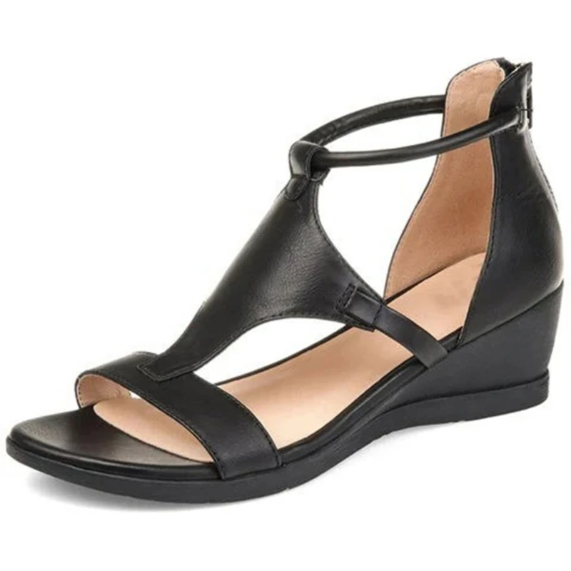 Сандалии; Импортные товары; Большие размеры; Римский стиль; Новинка 2021 года; Универсальная женская обувь на танкетке с высоким темпераментом; Оптовая продажа с открытым носком