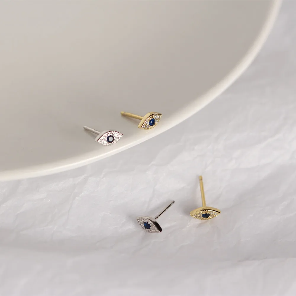 Серьги-гвоздики женские из серебра 925 пробы с цирконом