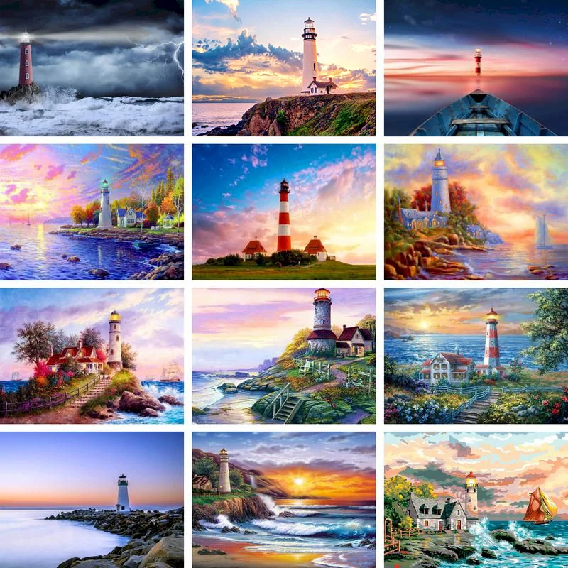 Картина по номерам Gatyztory сделай сам, маяк в рамке, пейзаж, живопись маслом, ручная роспись, уникальный подарок, домашний декор icon star icon star icon star icon star icon star