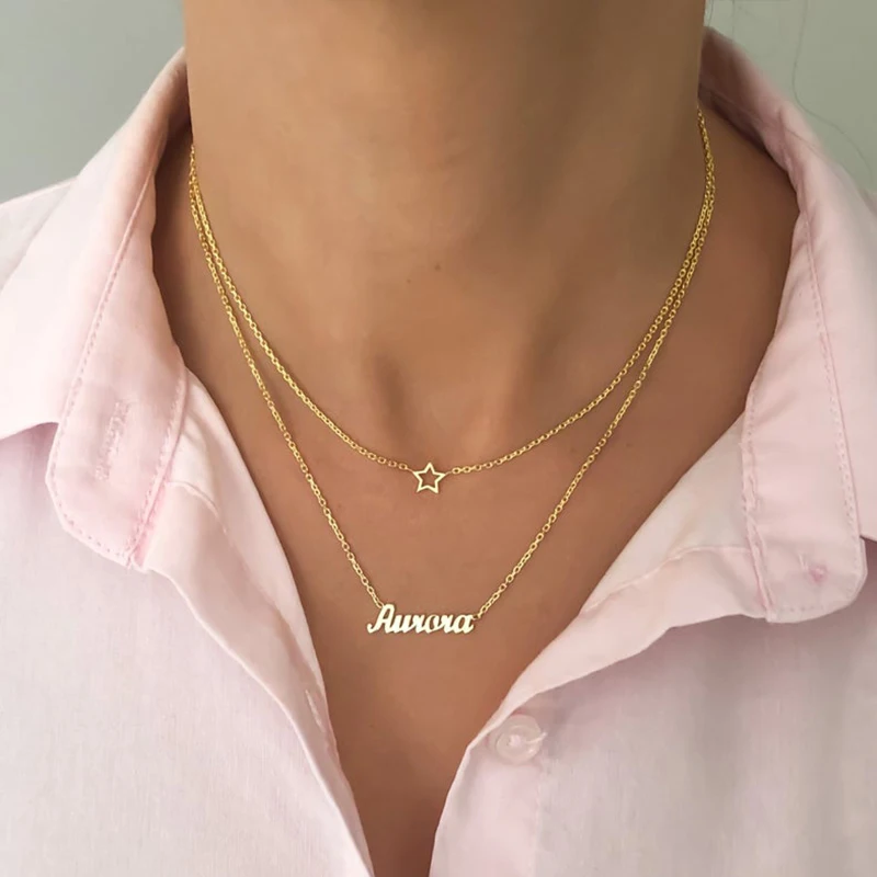 Goxijite индивидуальное Двухслойное ожерелье с именем для женщин, сердце, Бабочка, богемный чокер, кулон, день рождения, ювелирные изделия, подарок для влюбленных пар