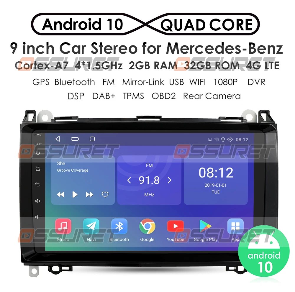 Автомобильное радио OSSURET Android10 для Mercedes-Benz ML-Class W1...