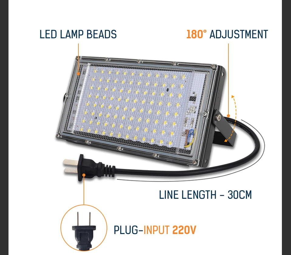 Светодиодный прожектор с вилкой Стандарта США, 100 Вт, IP65, водонепроницаемый Светодиодный прожектор, В переменного тока, светодиодный ная квадратная лампа, ландшафтное освещение для наружного настенного рекламного щита