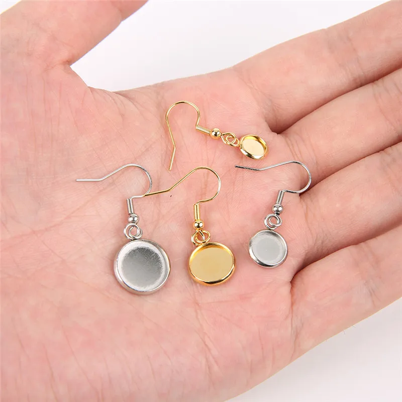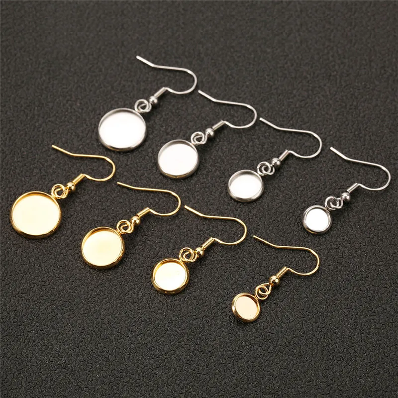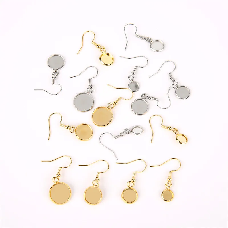 10 шт нержавеющая хирургическая Сталь Пустой Базы серьги-Крючки подходящая фурнитура на возраст 6, 8, 10, 12 лет 14 16 мм камень Кабошон ювелирные изделия Mkaing