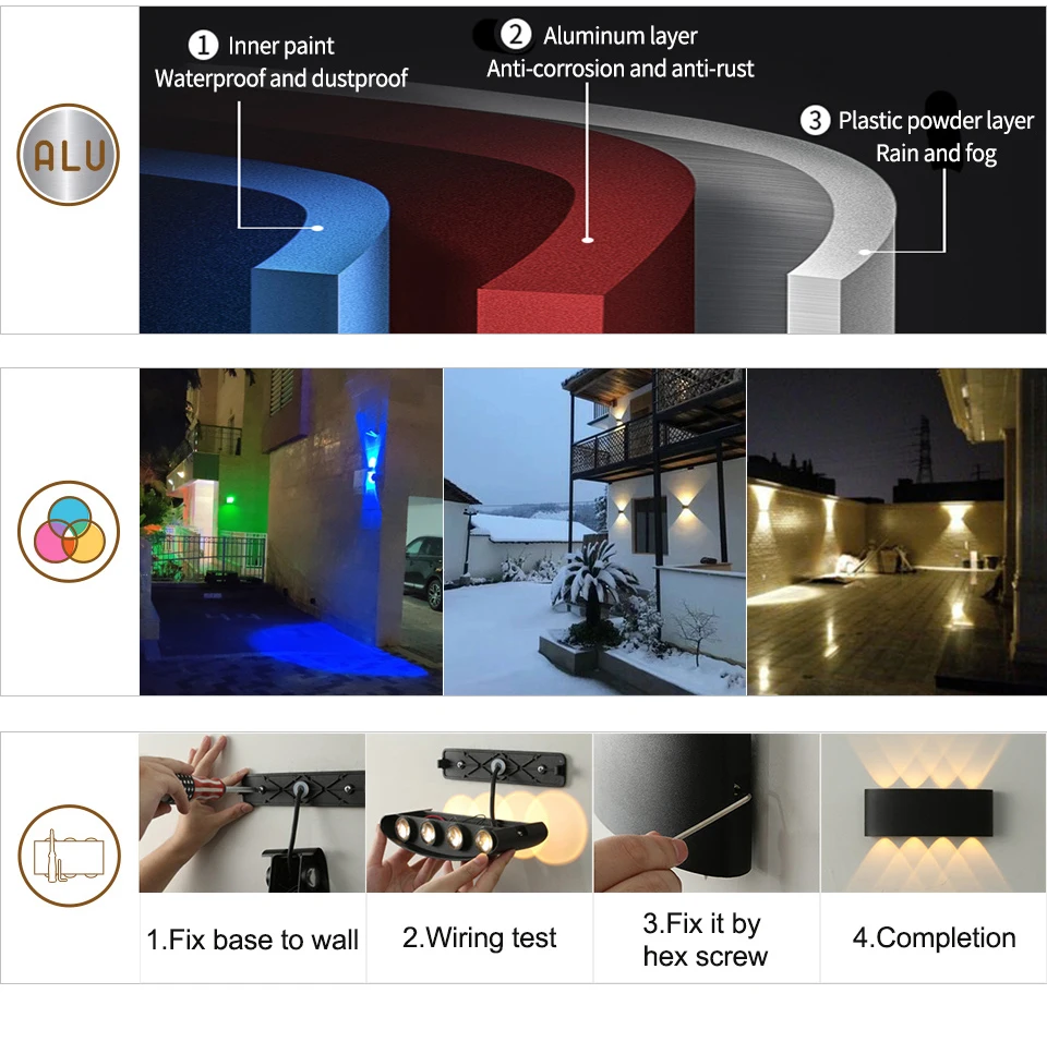 Уличный настенный светильник, Цветной RGB-контроль, украшение для сада, водонепроницаемый, алюминиевый, без мерцания, настенное уличное освещение для балкона