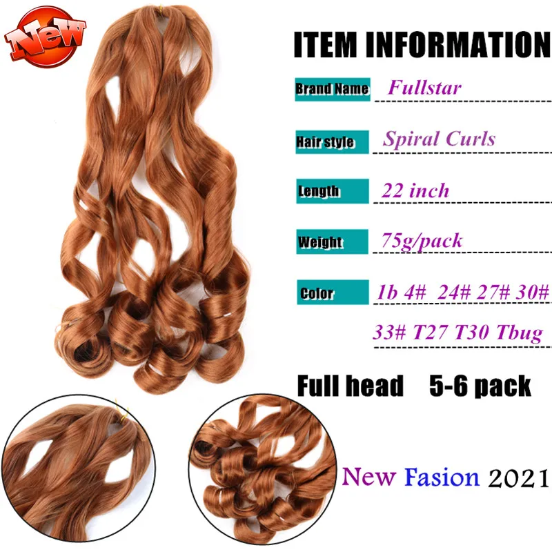 Спиральные косички для вязания крючком, без узлов, полная звезда, свободные волнистые косички, синтетические волосы оптом, черные, коричневые, предварительно растягивающиеся, вьющиеся