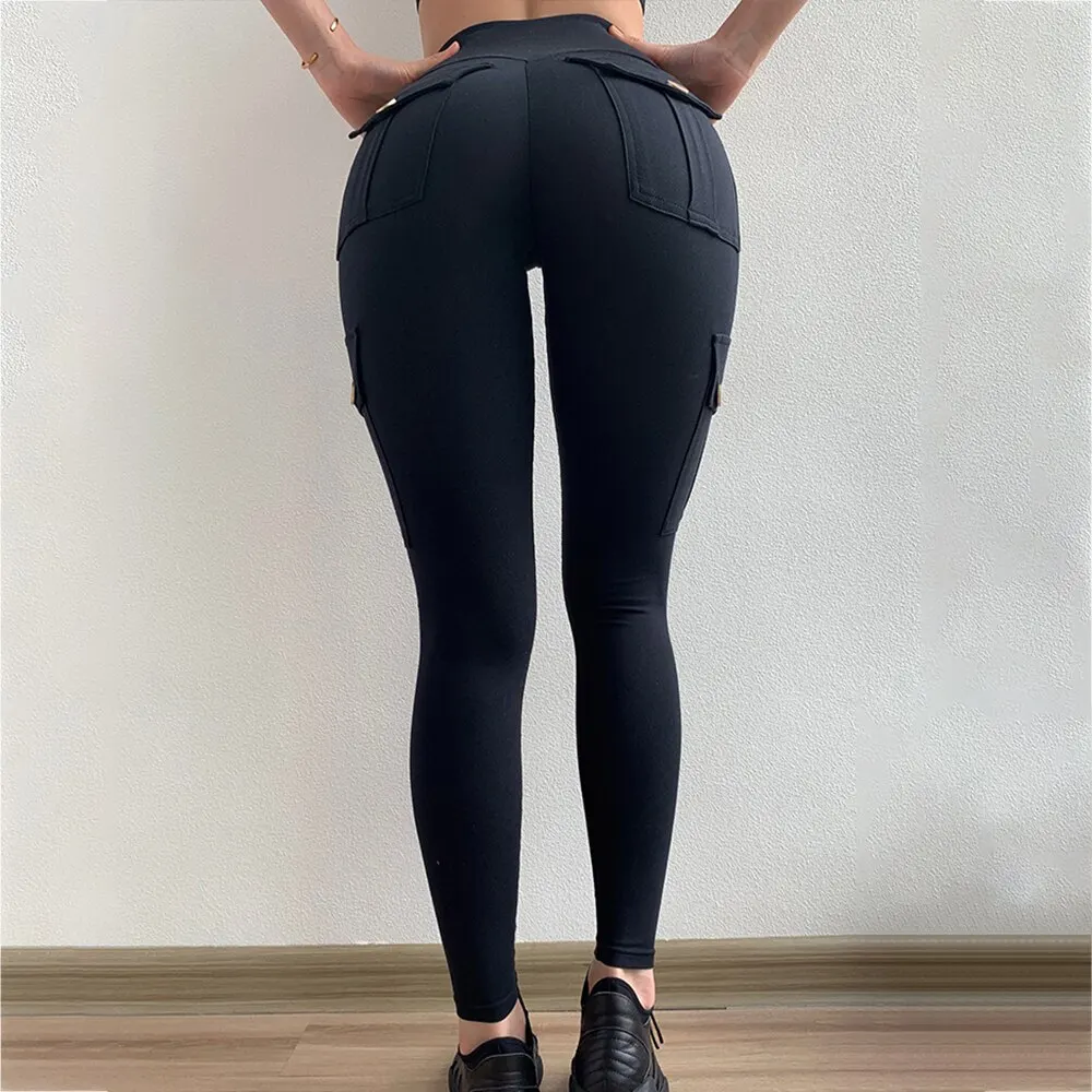 Женские эластичные леггинсы с высокой талией и 4 карманами