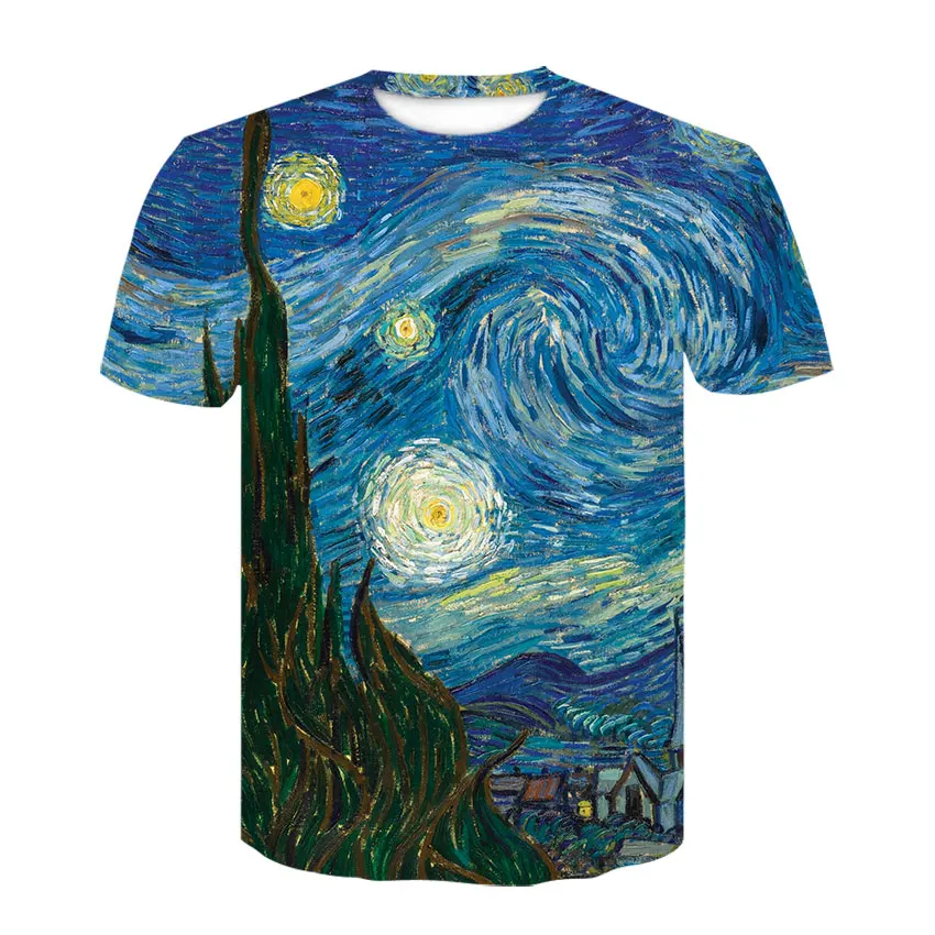 Футболка с 3D-принтом известного художника Ван Гога, брендовая дизайнерская футболка, классная голубая Высококачественная футболка с коротким рукавом в стиле хип-хоп