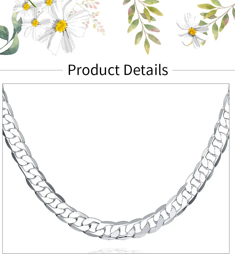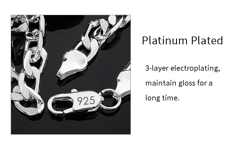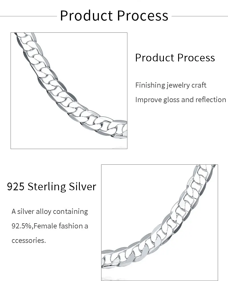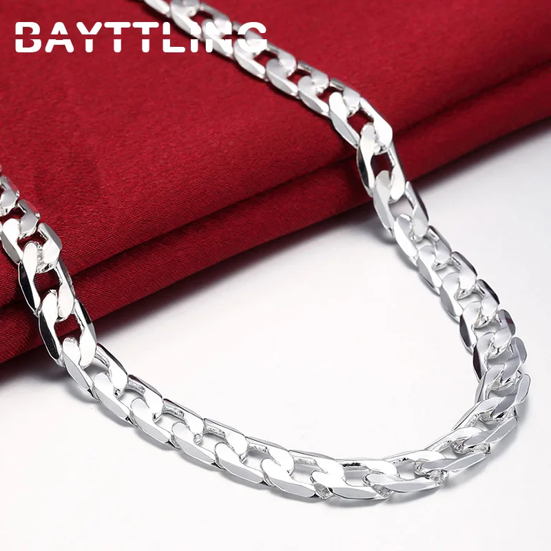Плоская цепочка BAYTTLING из стерлингового серебра 925 пробы 16/18/20/22/24 дюйма 8 мм, ожерелье для женщин и мужчин, модное свадебное украшение, подарок