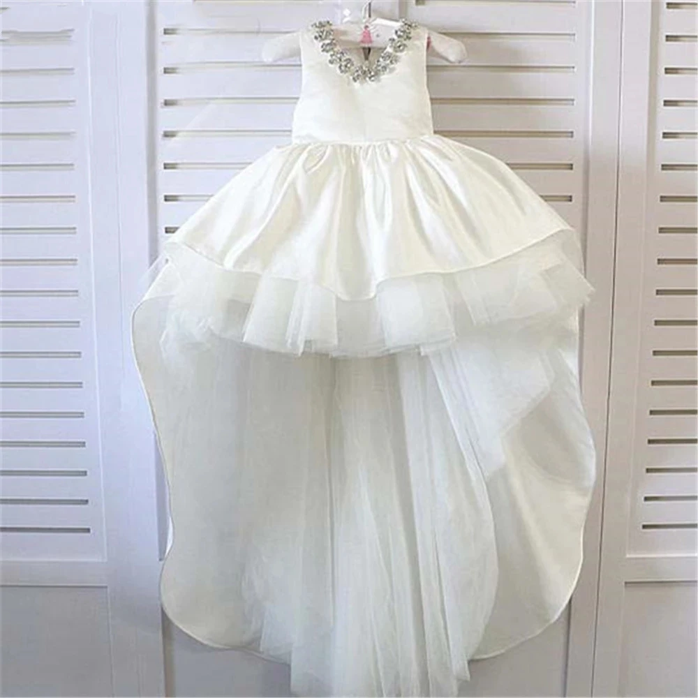 Платье для первого причастия, крещения, белое Цветочное платье для ...