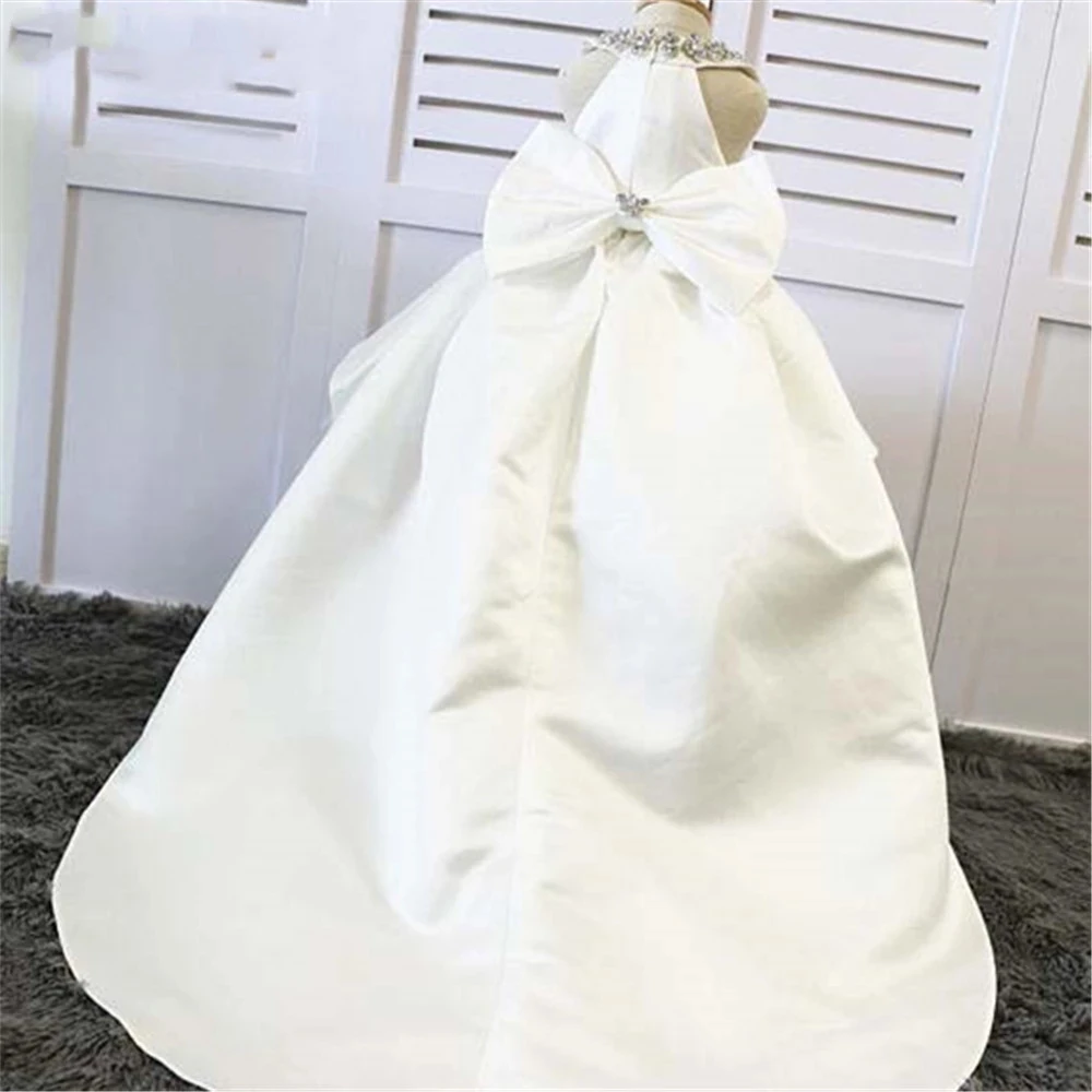 Атласное кружевное бальное платье для девочек, Белое Бальное Платье...