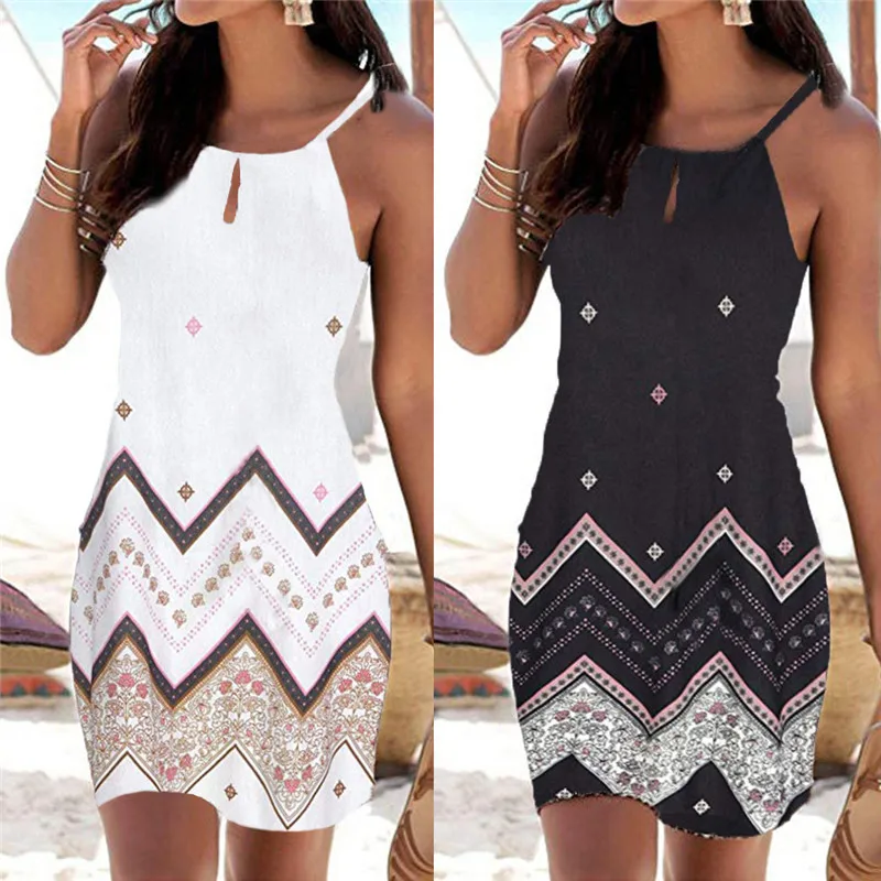 Женское платье с лямкой на шее ZOGAA, пляжный мини-сарафан без рукавов с принтом в стиле бохо, зимнее мини-платье