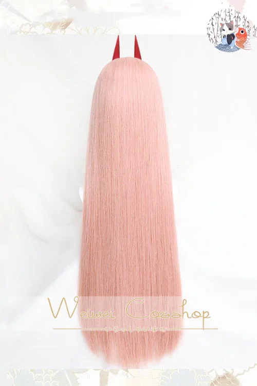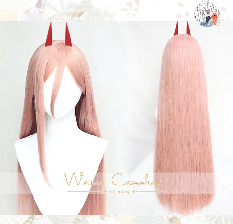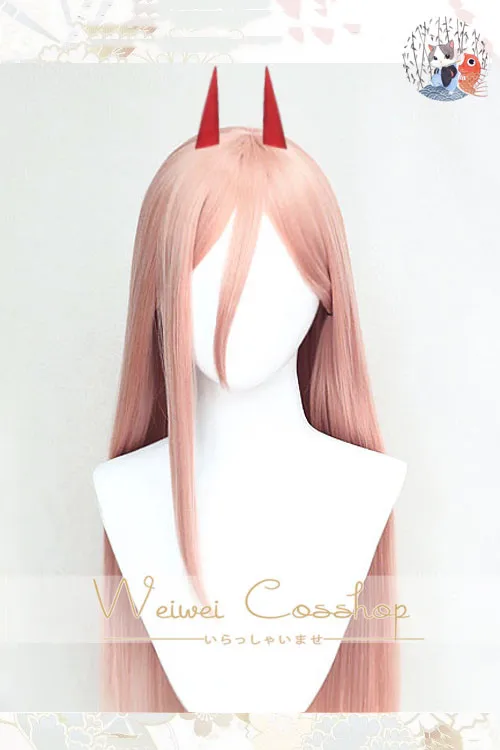 Парик для косплея с Бензопилой Man Power, длиной 80 см, розовый прямой термостойкий синтетический парик, парик, шапка, рога