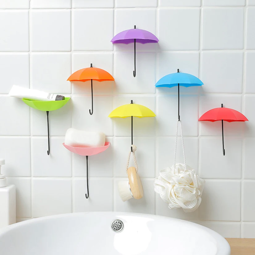 Милый зонтик Форма настенный держатель ключа брелок для ключей крепежных крючка для хранения вещей из нержавеющей стали и украшение для стен Ванная комната стеллажи для выставки товаров ключница