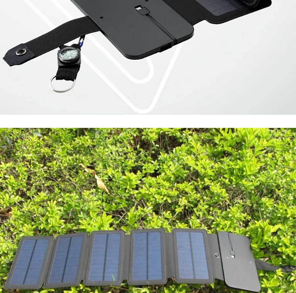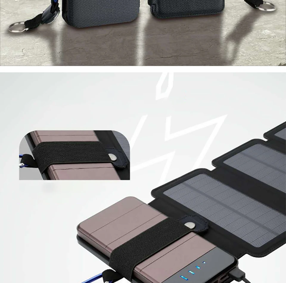 1. Встроенные 5 складных высокоэффективных солнечных панелей, что обеспечивает большую мощность и стабильную солнечную зарядку