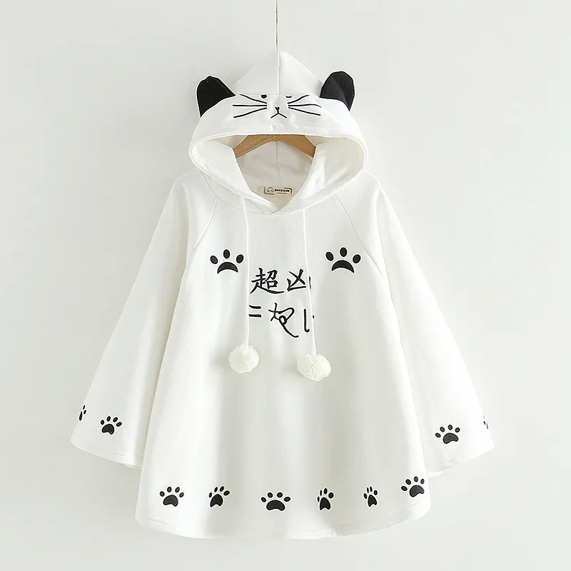 Плащ в стиле Лолиты Харадзюку Толстовка плащ японский сердитый кот Рождественский олень накидка флисовая свободная пуловер рукав летучая мышь пальто Свитшот