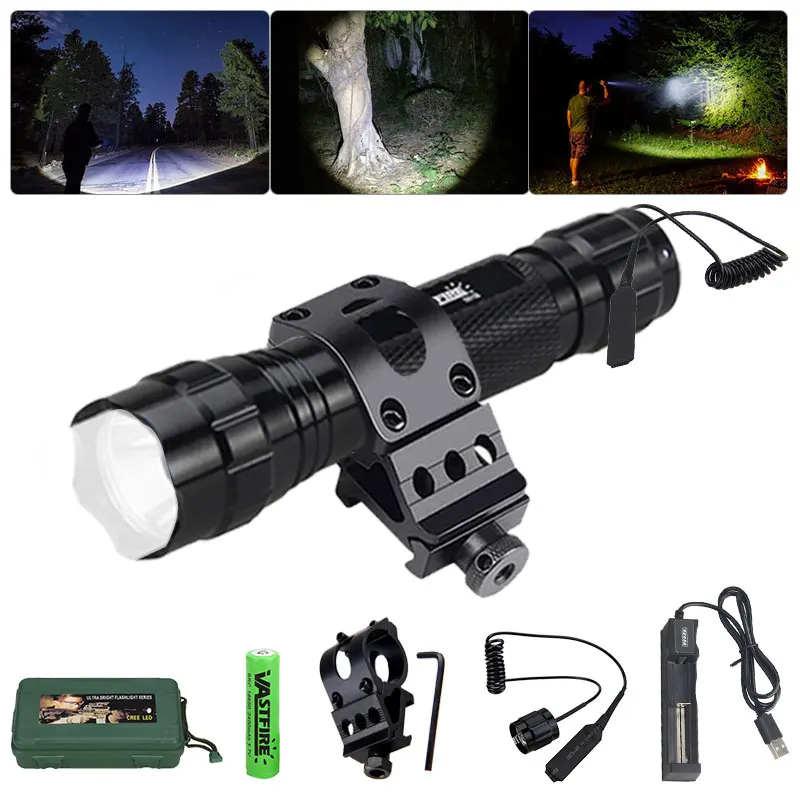 Светодиодный светильник для оружия 501B XM-L T6, 500 ярдов, перезаряжасветильник охотничья вспышка + крепление + дистанционный переключатель + 18650 + зарядное устройство + коробка