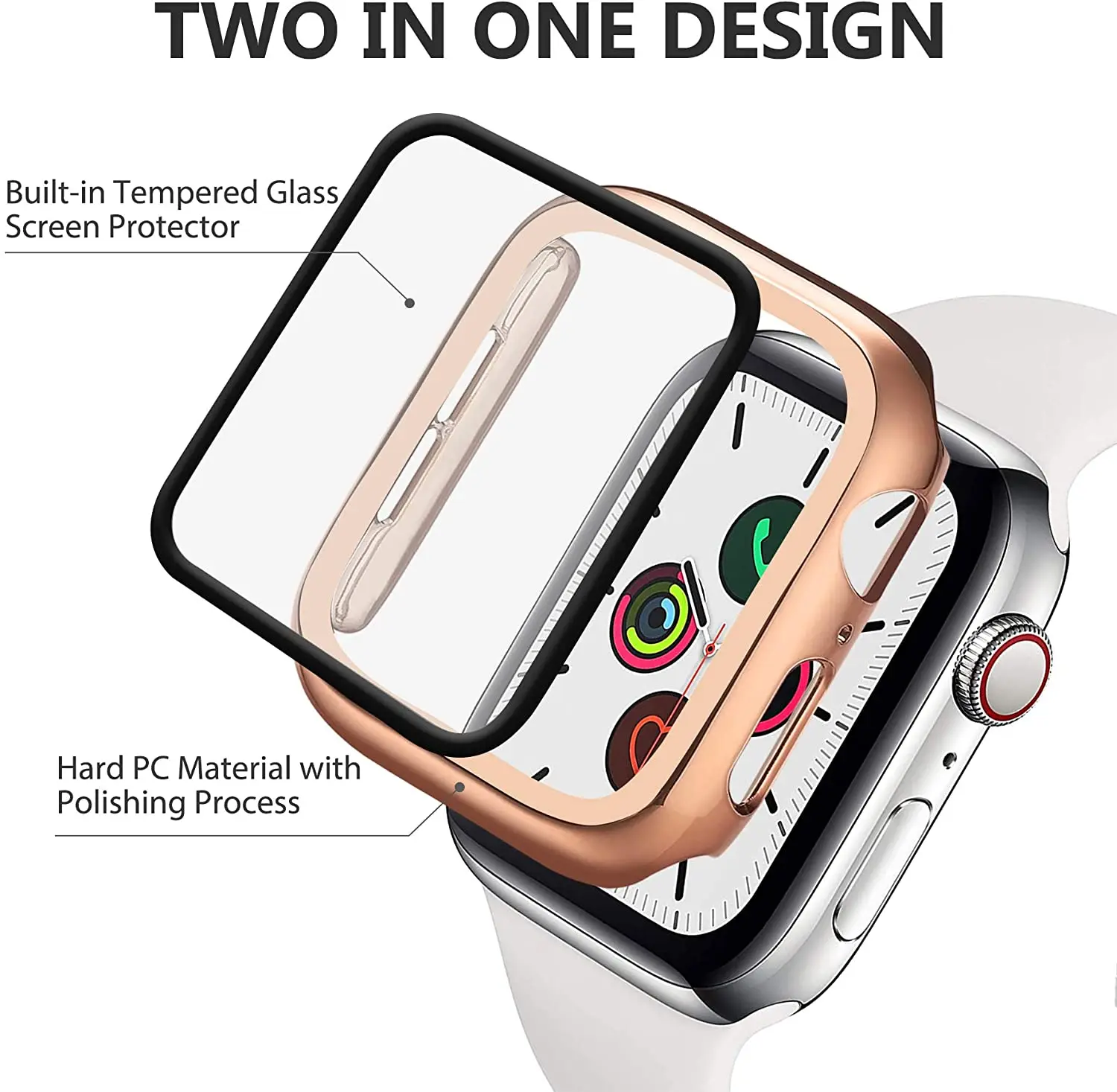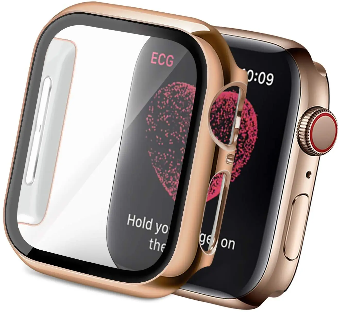 Чехол для Apple Watch, чехол серии 7 6 5 4 3 SE, бампер из закаленного стекла для ПК и чехол для iwatch 45 мм 41 мм 44 мм 40 мм 42 мм 38 мм