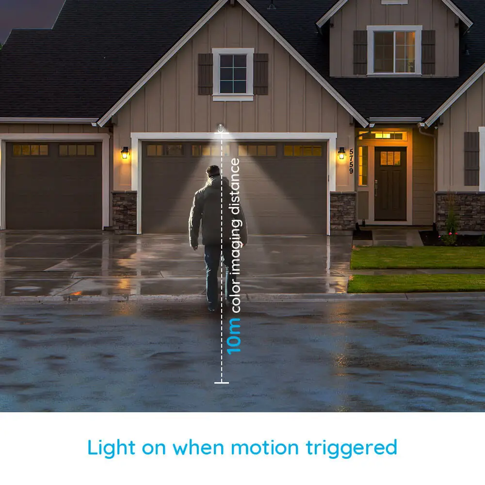 Благодаря встроенным прожекторам эта аккумуляторная камера сохраняет запись в полном цвете даже ночью. Это позволит получить больше визуальных деталей, которые помогут определить людей и автомобили, чем черно-белые видео.