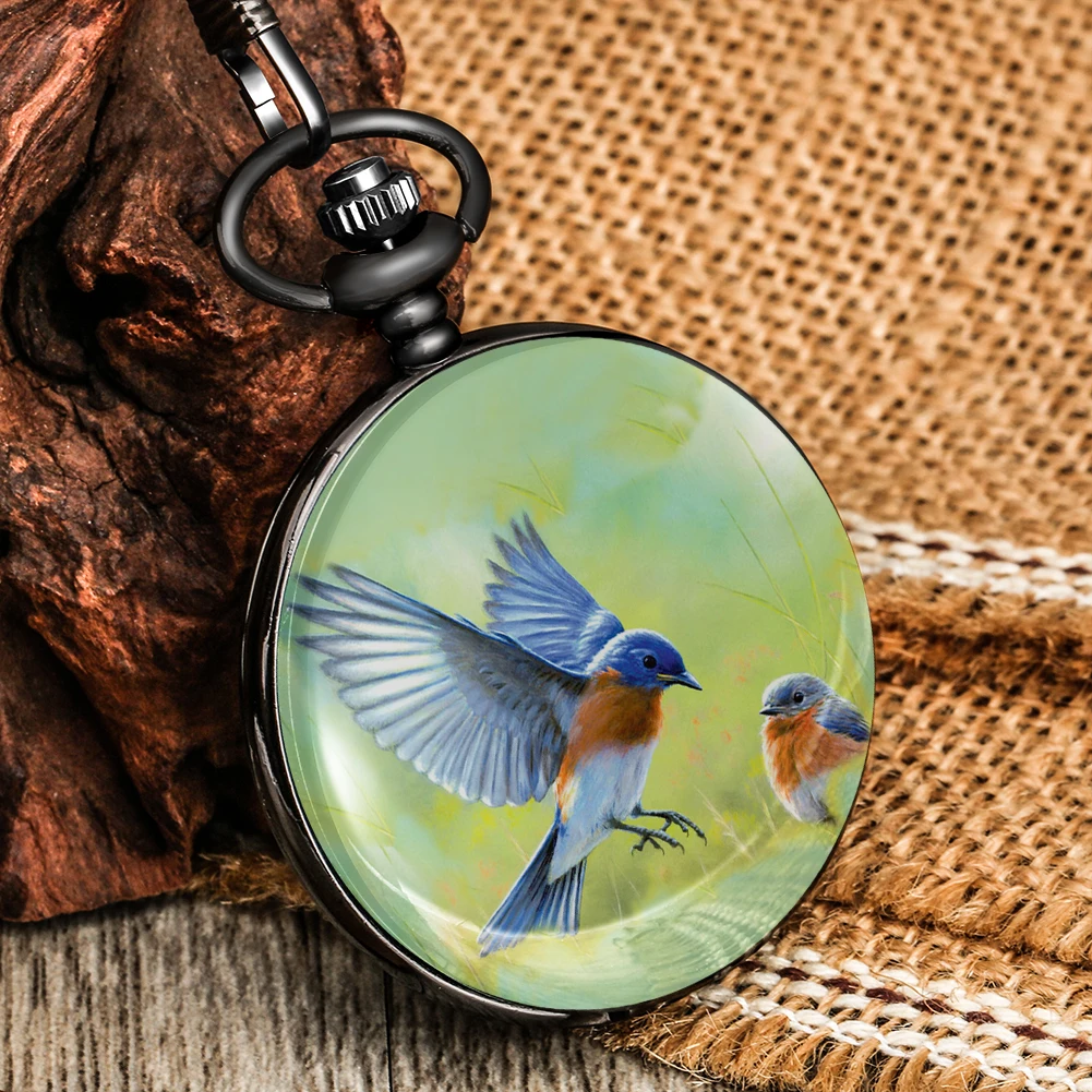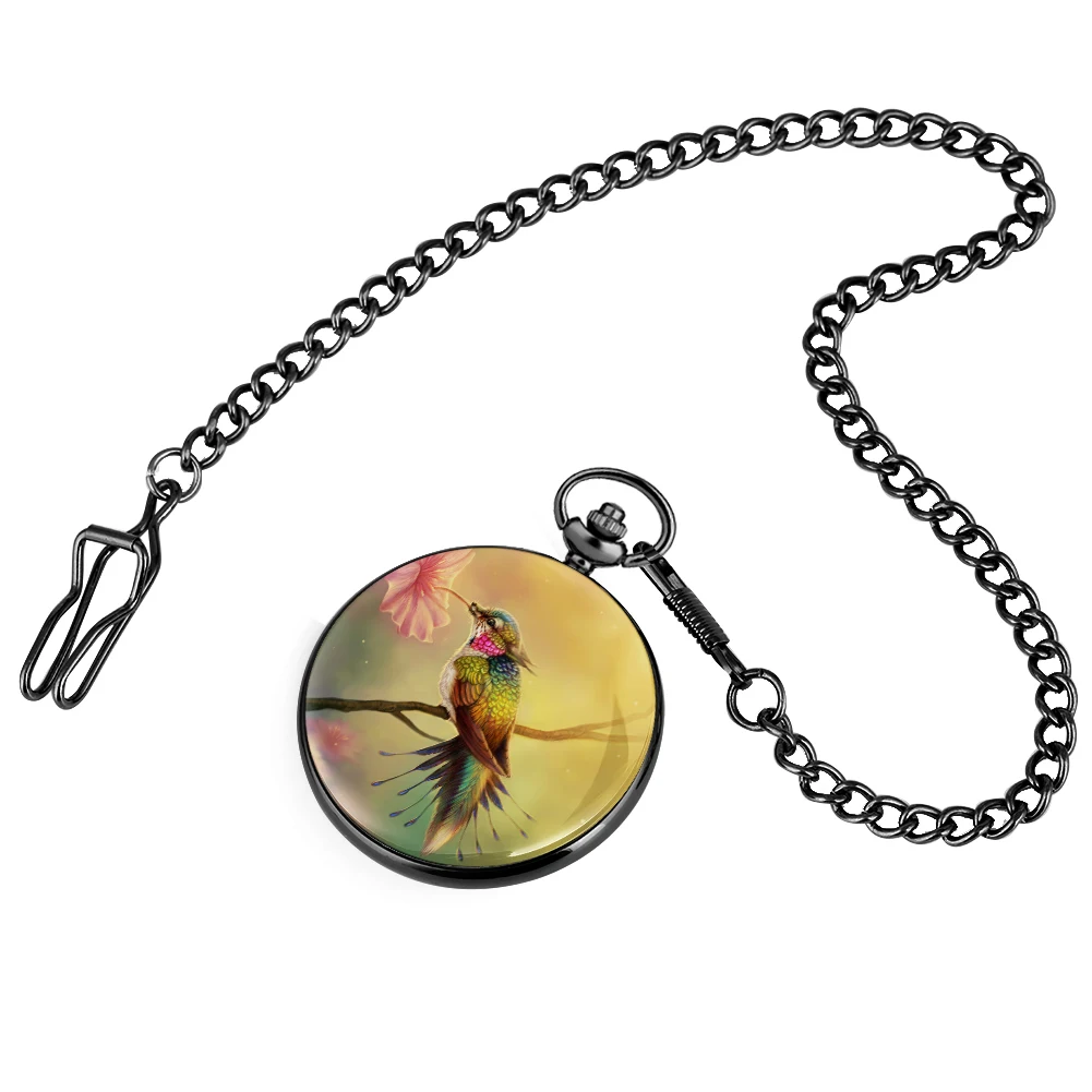Кварцевые карманные Аналоговые часы, легкие, с милым рисунком Колибри, классический циферблат, толстая цепочка, подарки