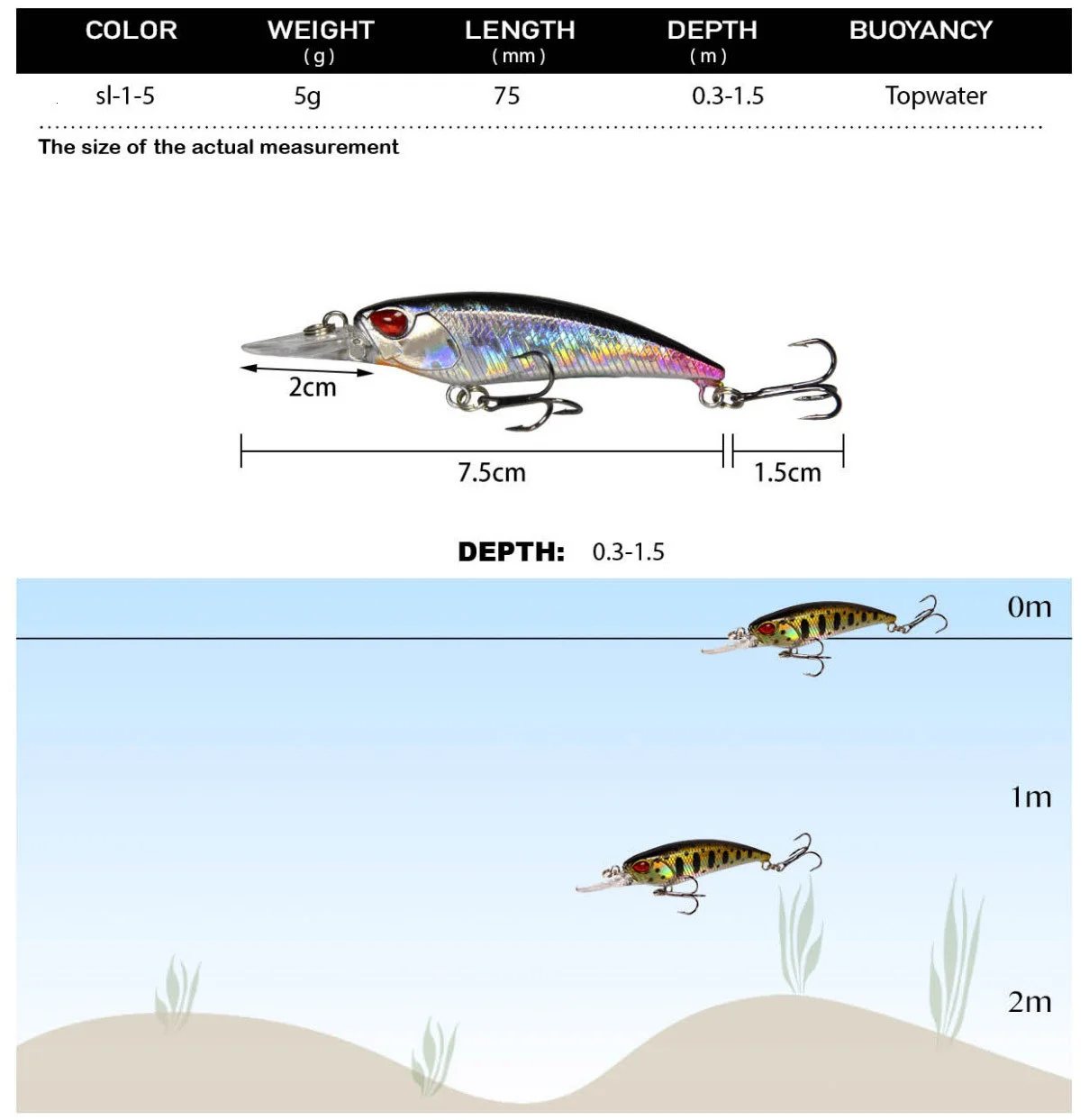 WAVEISLAND Minnow приманки для ловли рыбы, 5g7,5 см Topwater приманка бас рыбалка приманка Мино Металлические Блесны искуственные паллет Articulos де Pesca