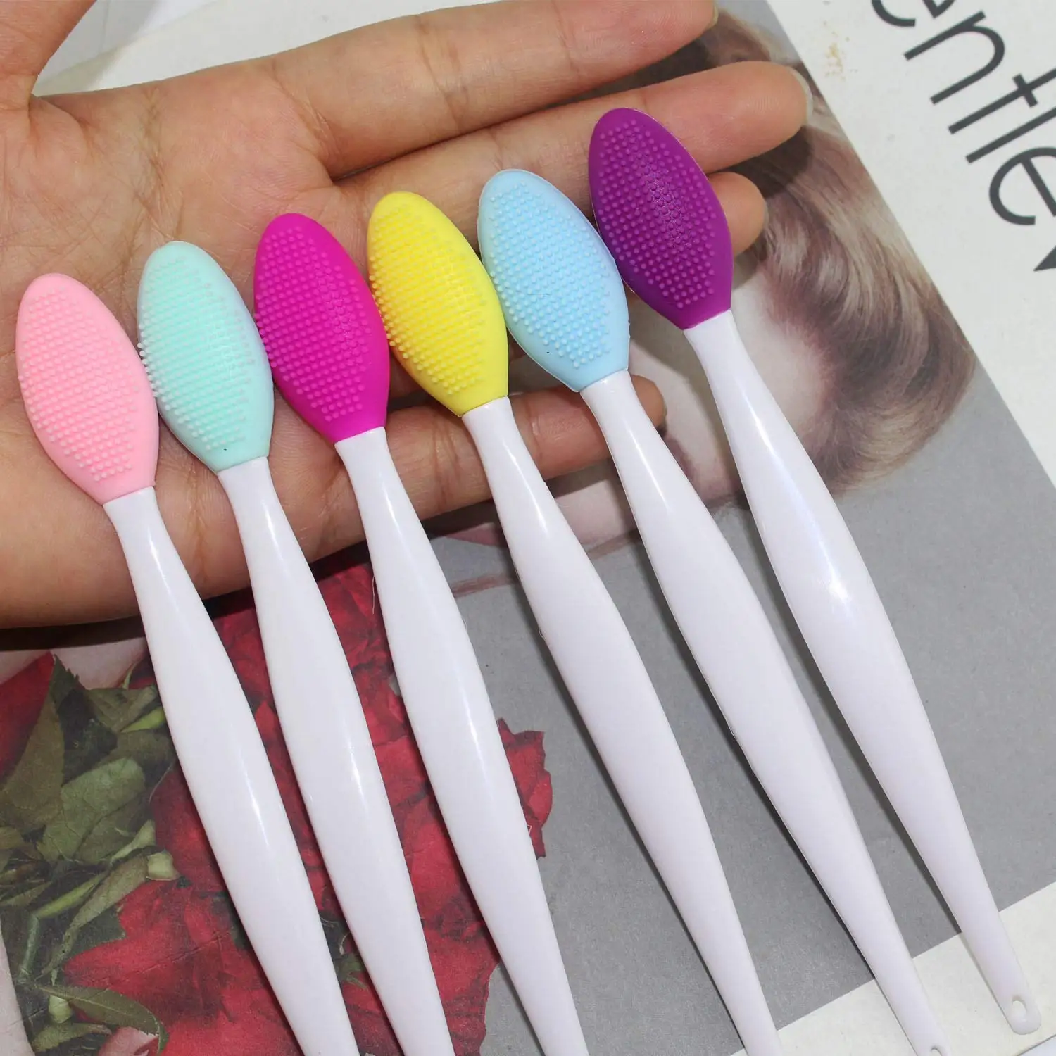 20 шт., отшелушивающая щетка для губ, щетка для чистки носа, двухсторонняя Мягкая силиконовая щетка для скраба для губ, инструмент для удаления черных точек в носу