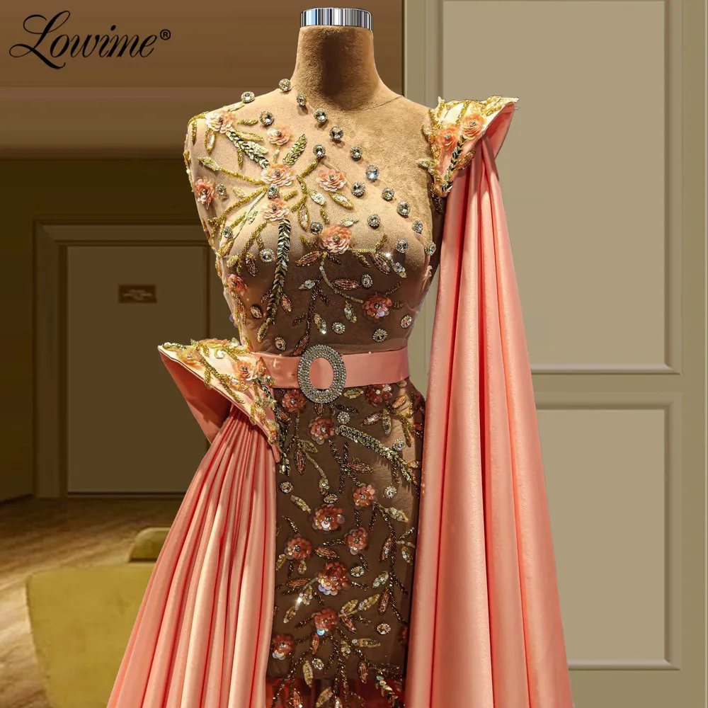Lowime размера плюс, румяный розовый Иллюзия вечернее платье Ближний Восток Для женщин Выпускные платья Длинные Кристаллы Платья знаменитостей Vestido De Festa