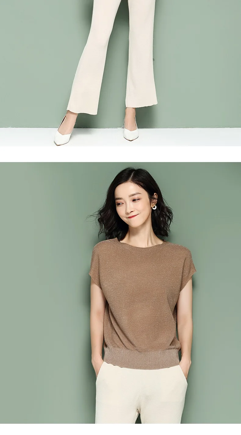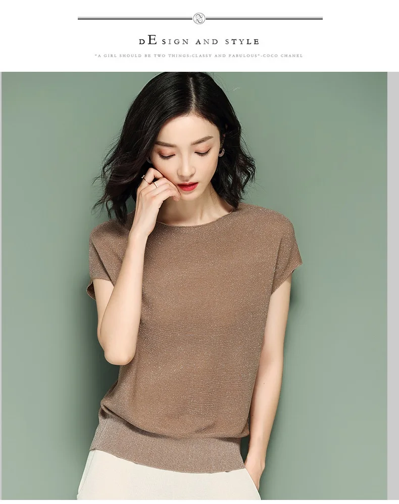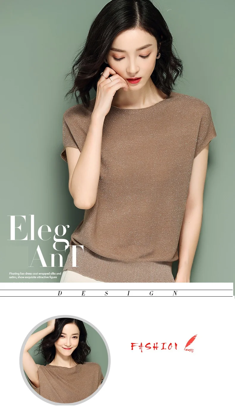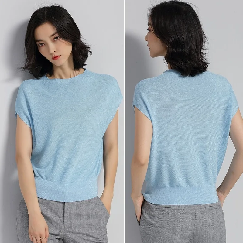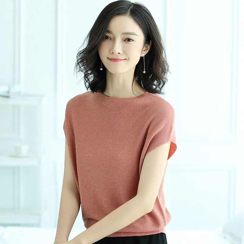Женский Яркий шелковый трикотажный топ с рукавами летучая мышь, элегантный Свободный пуловер, блестящий синийхаки, лето 2021