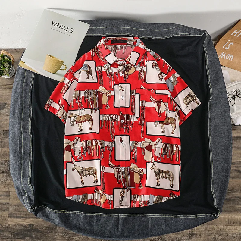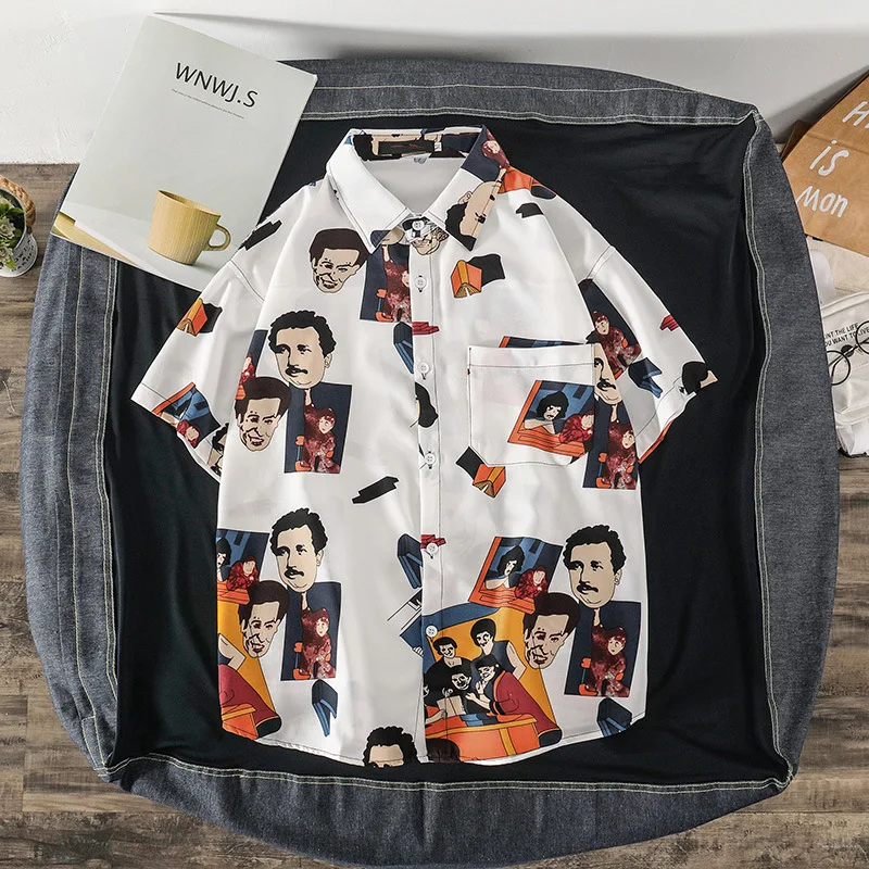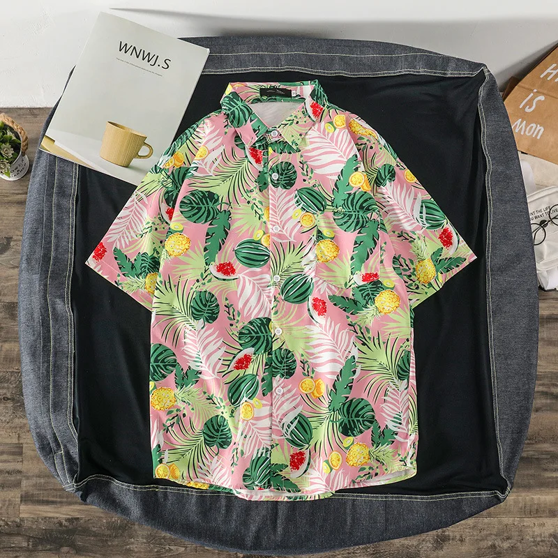 2021 модные Гавайские рубашки для мужчин, Гавайские мужские рубашки с мультипликационным принтом динозавра белого и розового цвета, Мужская Корейская Повседневная Праздничная рубашка
