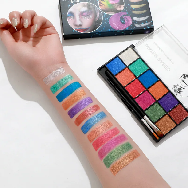 Хеллоуин Макияж 12 цветов лайнер хна жемчужный светильник водорастворимый Набор для рисования тела Веерная модель краска для лица maquiagem краска для тела
