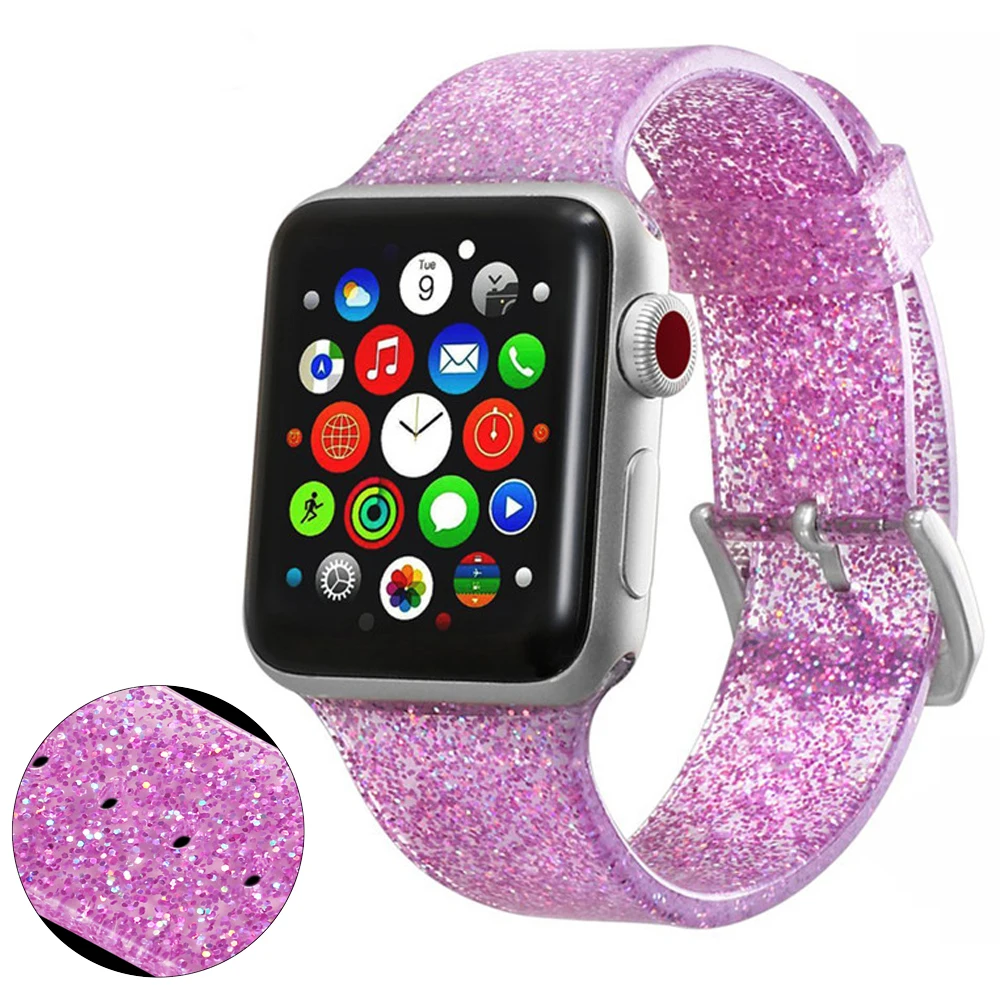 Силиконовый ремешок для Apple Watch, 42 мм, 38 мм, ремешок для iwatch 44 мм, 40 мм, блестящий браслет, аксессуары для apple watch серии 6, se, 5, 4, 3