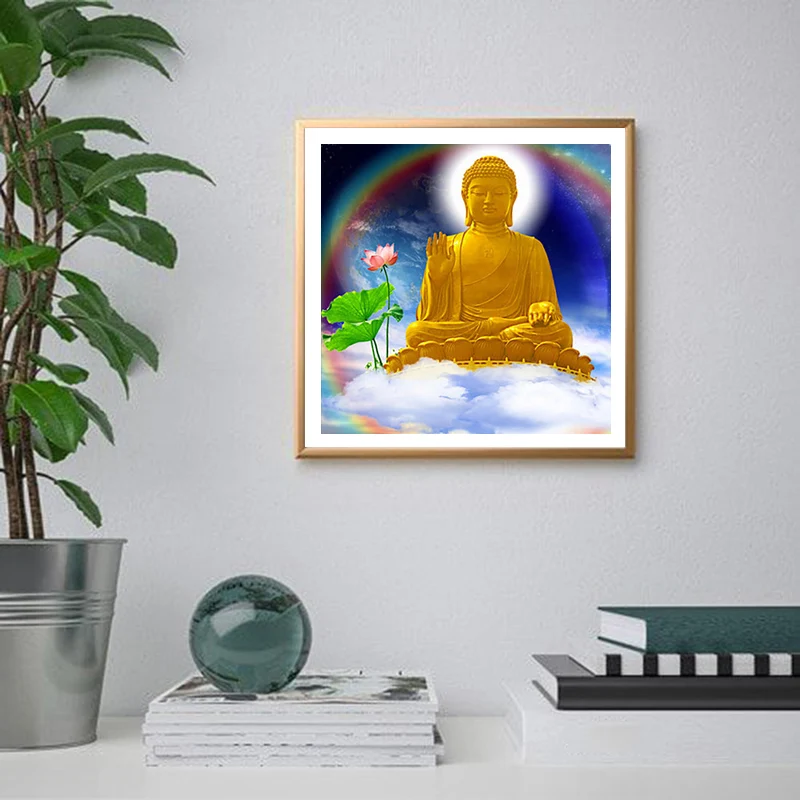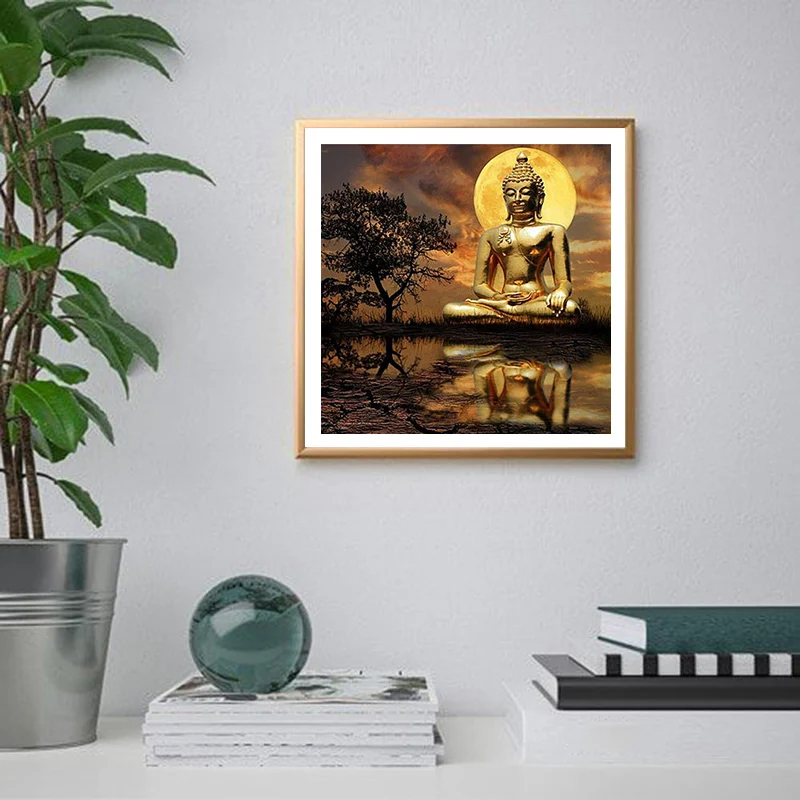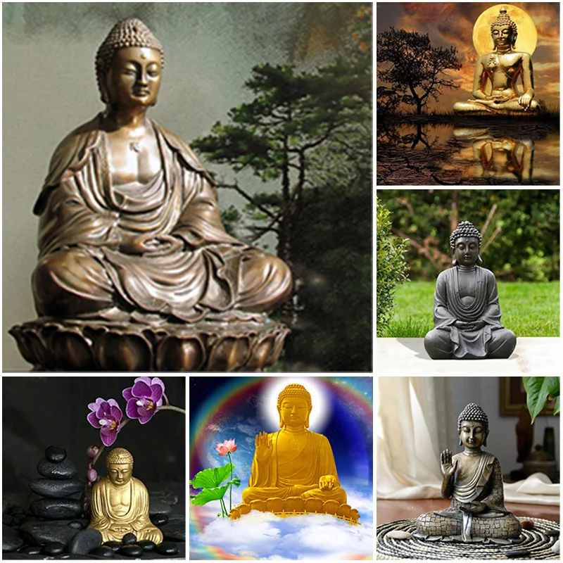 Алмазная живопись 5D, квадратная круглая смола, пейзаж Будды, наборы для вышивки крестиком, мозаика, украшение для дома