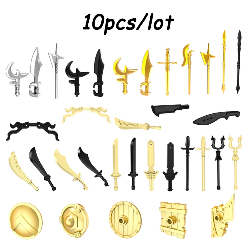 10 шт.лот строительные блоки средневековый воин солдат Аксессуары оружие копье нож меч молоток щит игрушка Дети мальчик подарок MOC