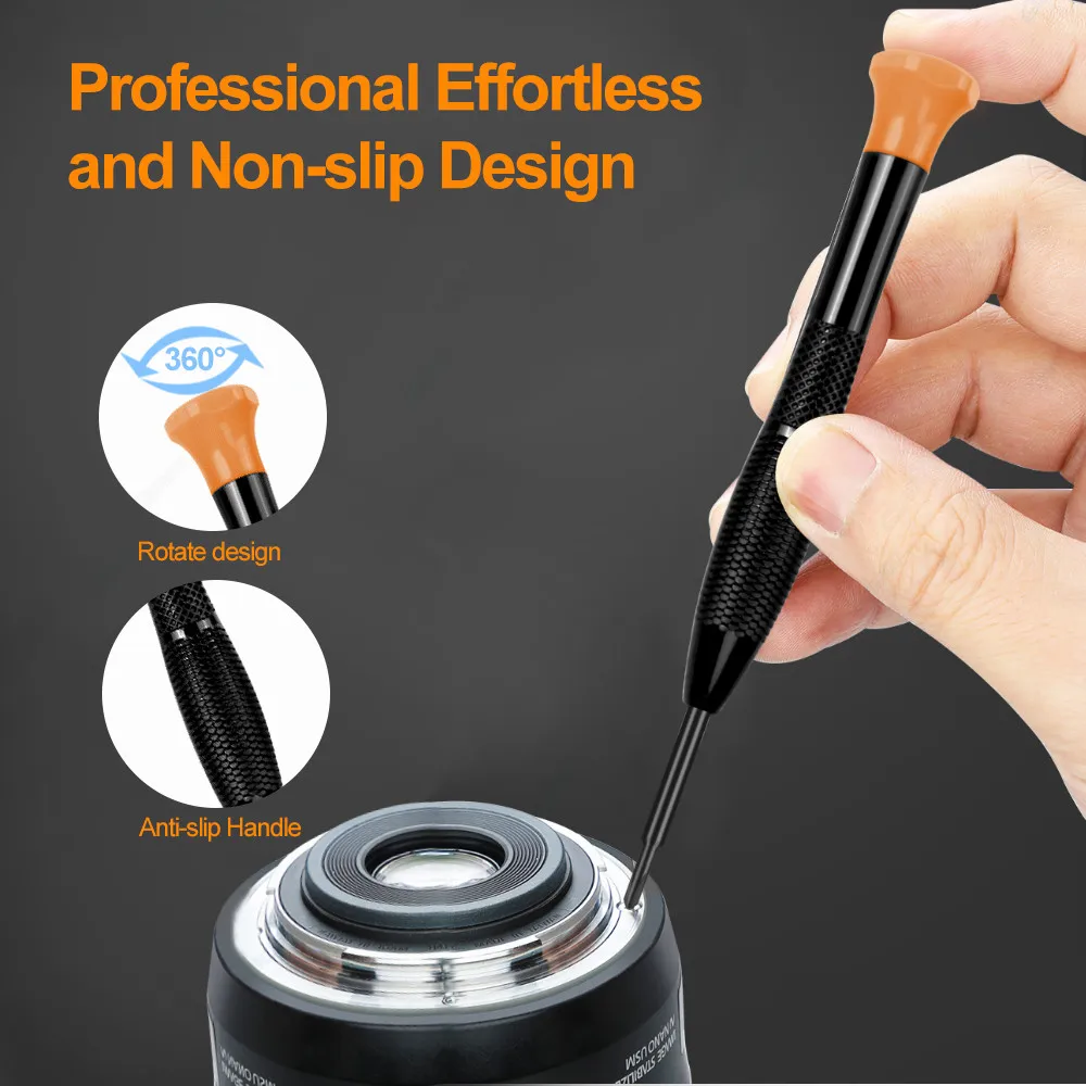 -Набор крошечных отверток имеет вращающийся на 360 ° дизайн, При фиксации торцевой крышки и поворотной ручки делает удаление или фиксацию винтов трудоемкими и легкими.