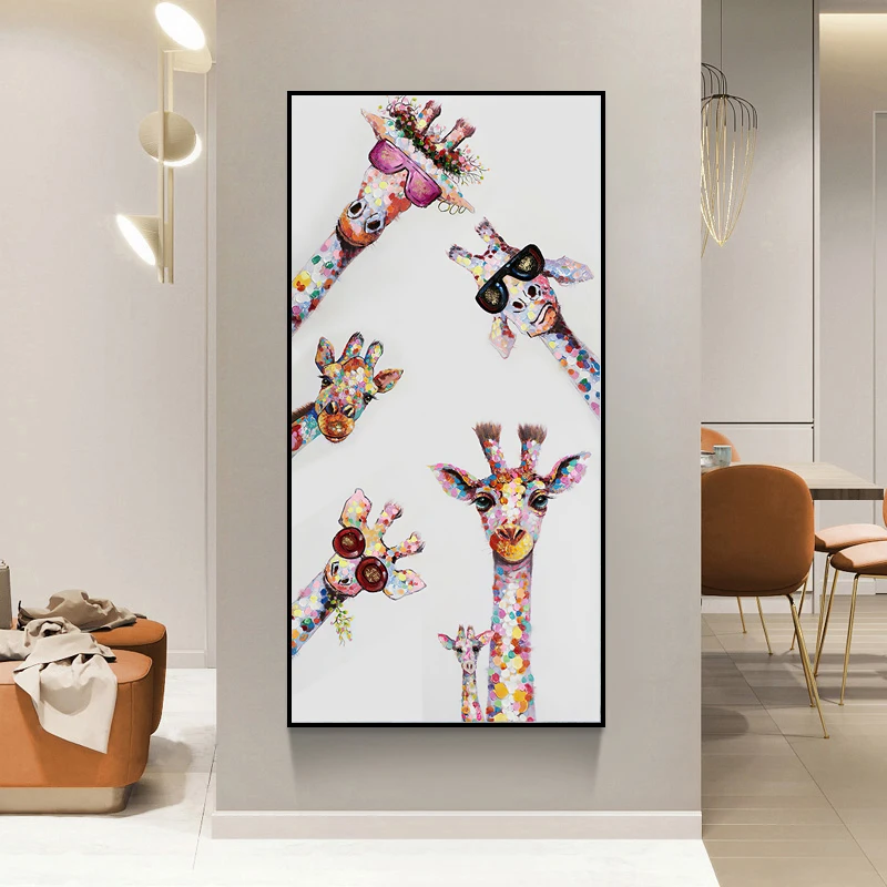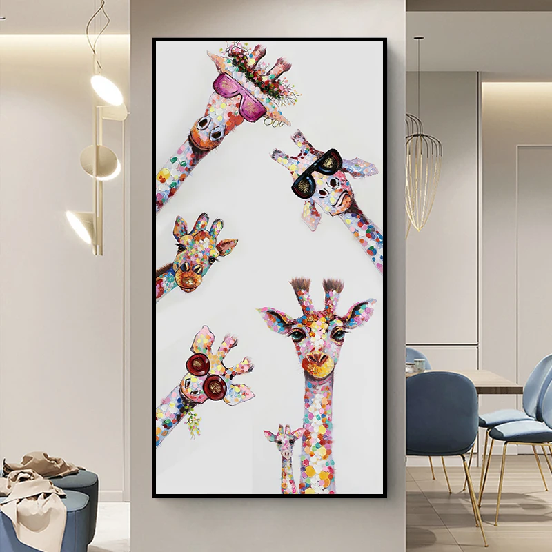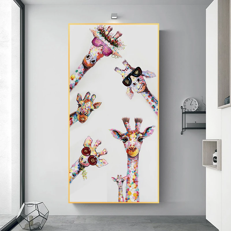Граффити Искусство Холст Живопись смешной Жираф семья настенные плакаты и принты животные Настенная картина для гостиной домашний декор
